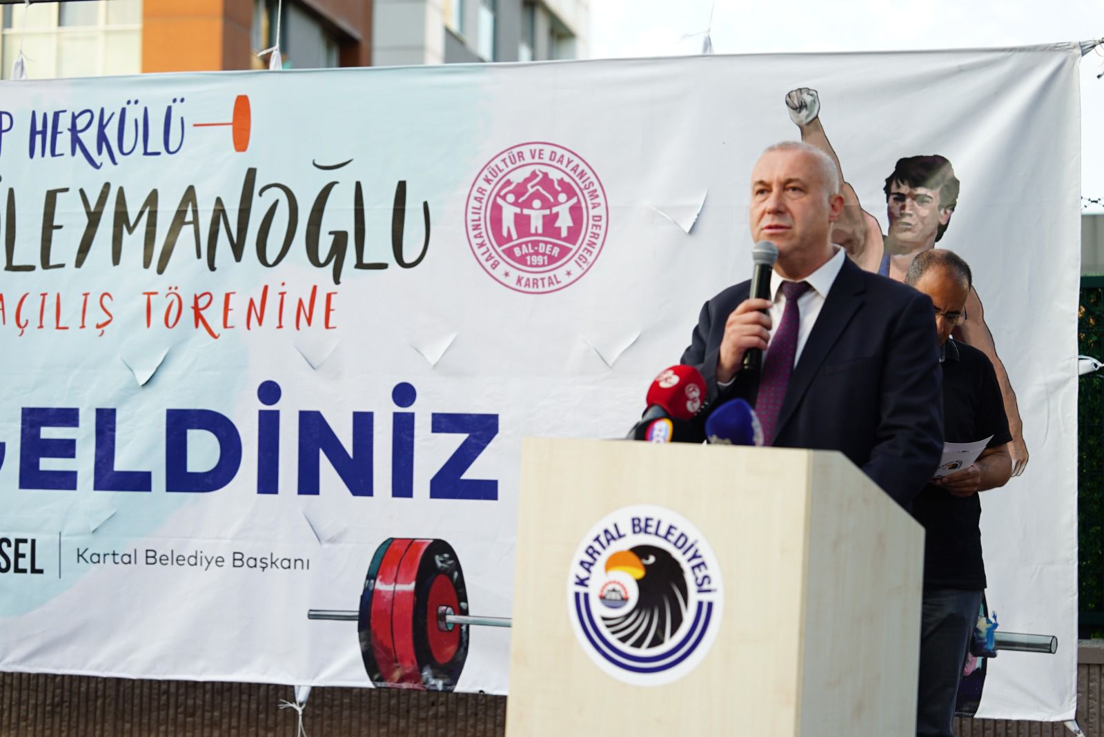 Açılış töreninde konuşan Kartal Belediye Başkanı Gökhan Yüksel, “Naim Süleymanoğlu’nun başarılarıyla büyüyen çocuklardan bir tanesiyim. Kendisinden 3 kat ağırlıkta halteri kaldıran bir sporcu, deha. Fakat daha sonra kupalardan ve madalyalardan daha büyük şeyler başardığını büyüdüğümde öğrendim. Hem sporun gücü, hem sanatın gücüyle sinemaya yansıyan filminden sonra gözyaşlarımı tutamadığım anlar oldu. Anladım ki, madalyalardan daha kıymetli şeyler başarmış. Naim Süleymanoğlu’nun Türkiye Cumhuriyeti’ne kazandırdığı, Türklüğe kazandırdığı… Bulgaristan’da yaşayan Türklerin önderliğini yaptı ve sporun gücüyle bunu dünyaya duyurdu. Bu büyüklüğü, bu duruşu, kendisine neler teklif edilmesine rağmen hepsini reddedip bunu başarması ve bugünlere getirmesi çok kıymetliydi. Bunun dilden dile söylenmesi ve nesilden nesile aktarılması gerekiyordu. Bu parkımız baştan aşağıya yenilendi. Komşularımızın ve çocuklarımızın oynayacağı bir alan haline geldi. Fakat Naim Süleymanoğlu ismi ve onun bilgileri, büstü çocuklarımızda merak uyandırsın. Kimdi bu sporcumuz densin. Naim Süleymanoğlu’nun sporculuğu ve duruşu unutulmasın diye bu adımı attık. Hepimize hayırlı uğurlu olsun. Naim Süleymanoğlu’nun ismi ve büyüklüğü unutulmasın. Naim Süleymanoğlu sadece Balkan camiasının kahramanı değil, Türkiye Cumhuriyeti’nin kahramanıdır.” ifadelerini kullandı.