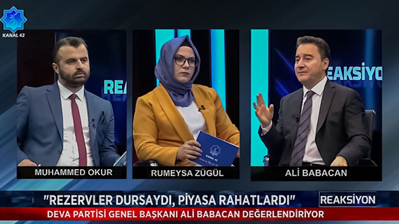 DEVA Partisi Genel Başkanı Ali Babacan, “Kanal 42” televizyonunda yayınlanan “Reaksiyon” programında, Muhammed Okur ile Rumeysa Zügül’ün sorularını cevapladı.