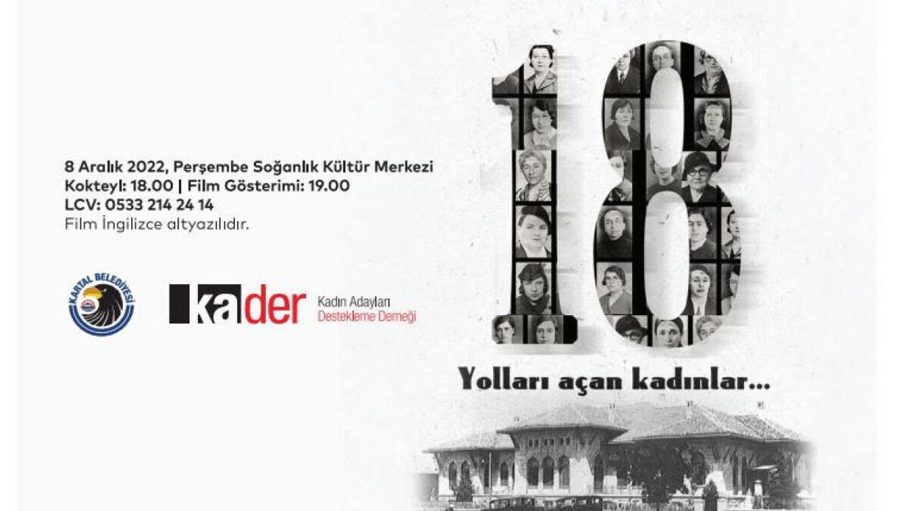 Kartal Belediyesi Kadın ve Aile Müdürlüğü, Kartal Belediye Meclisi Toplumsal Cinsiyet Eşitliği Komisyonu ve KA-DER’in iş birliği ile gösterime girecek belgesel, ‘5 Aralık Kadınlara Seçme ve Seçilme Hakkının Tanınması’nın 88’inci yıl dönümü dolayısıyla izleyiciler ile buluşuyor.
