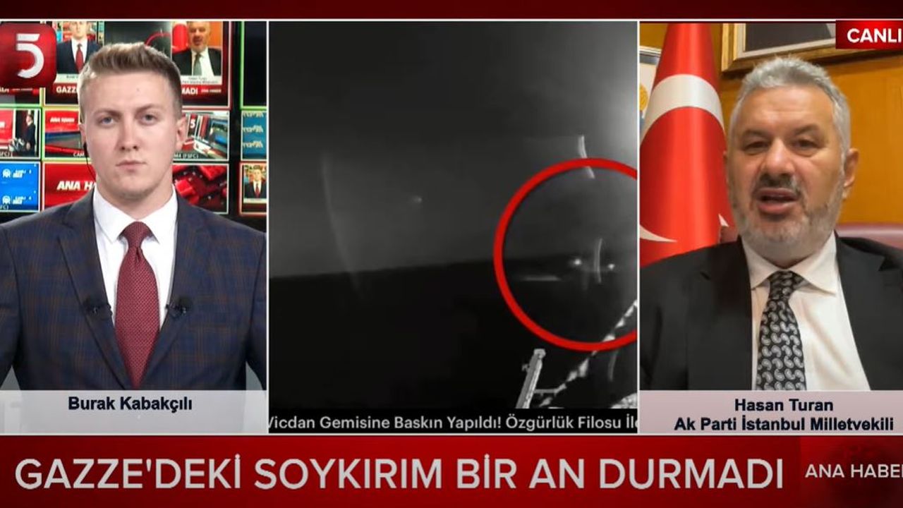 AK Parti İstanbul Milletvekili Hasan Turan, TV5 Ana Haber’e konuk oldu. Burak Kabakçılı'nın sorularını yanıtladığı canlı yayında Gazze'deki soykırıma destek vermek üzere hareket eden ve Türkiye Cumhuriyeti vatandaşlığı bulunan siyonistlere ilişkin sert açıklamalarda bulundu.