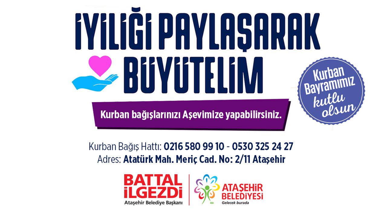 Aşevi'nin Kurban Bayramı süresince hizmet vermeyi sürdüreceğini belirten Ataşehir Belediye Başkanı Battal İlgezdi, “Kardeşlik, dostluk bağlarımızın güçlendiği Kurban Bayramı’nda bu yıl da Ataşehirimizde yardımlaşma ve dayanışmayı çoğaltıyoruz. İhtiyaç sahibi ailelerle aranızda köprü olan kurban bağışlarınızı Aşevimize bekliyoruz. Toplanan bağışları hijyen koşullarına uygun olarak pişirdikten sonra komşularımıza dağıtarak, sofralarda bereketi çoğaltacağız” dedi.