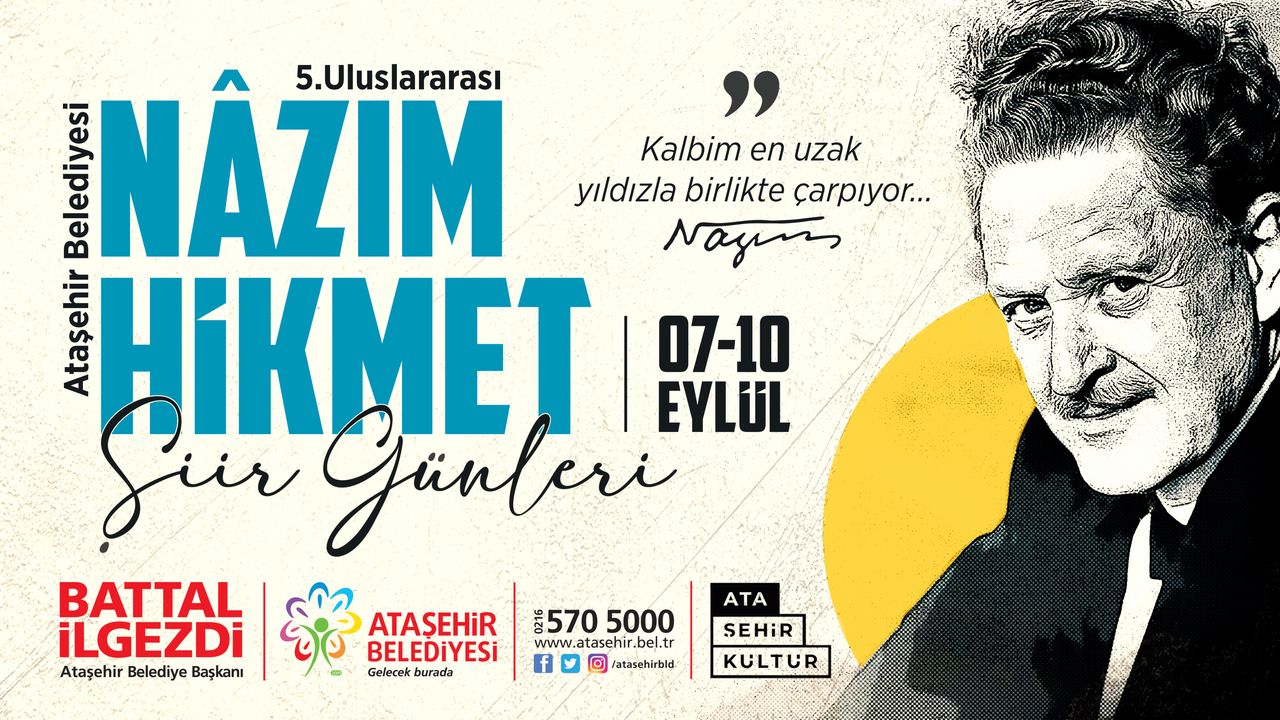 Memleket ve dünya şairi Nâzım Hikmet’i saygı ve özlemle anmak amacıyla Ataşehir Belediyesi tarafından her yıl gerçekleştirilen “Uluslararası Nâzım Hikmet Şiir Günleri”nin 5.’si başlıyor. 7 – 10 Eylül tarihleri arasında düzenlenecek Şiir Günleri’ne Türkiye’den ve konuk ülke Fransa’dan şairler katılacak. Etkinlikler, Ataşehir’de son dönemde kültür ve sanatın buluşma noktaları haline gelen Amfili Park ve Buhara Parkı ile İstanbul Büyükşehir Belediyesi tarafından restorasyon çalışmaları tamamlanarak İstanbullulara yeniden kazandırılan Büyükada’daki Taş Mektep’te yapılacak.