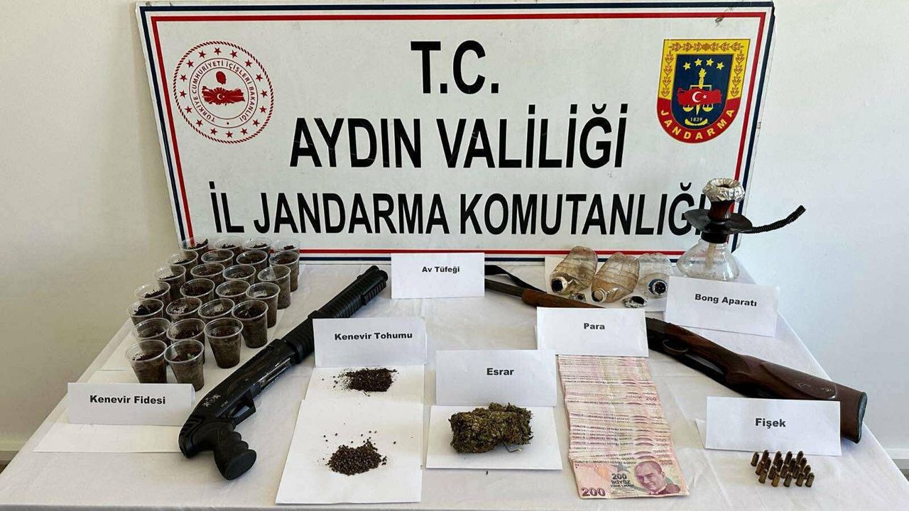 Aydın İl Jandarma Komutanlığı'na bağlı ekipler, uyuşturucu satıcılarına yönelik çalışma başlattı. Ekipler dün belirlenen adreslere operasyon düzenledi. Yapılan aramalarda 234 gram metamfetamin, 114 gram kubar esrar, 25 gram kenevir tohumu, 25 kenevir bitkisi, 10 sentetik hap, 2 ruhsatsız tüfek, 7 uyuşturucu kullanma aparatı ve suçtan elde edildiği değerlendirilen 11 bin TL para ele geçirildi. 27 şüpheli gözaltına alındı. Şüphelilerin işlemlerinin sürdüğü bildirildi.