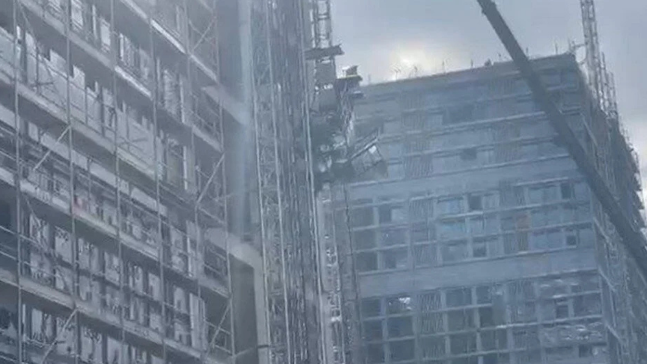 İstanbul'un Bahçelievler ilçesinde inşatta bulunan yük asansörü 5'inci kattan düşerek askıda kaldı.