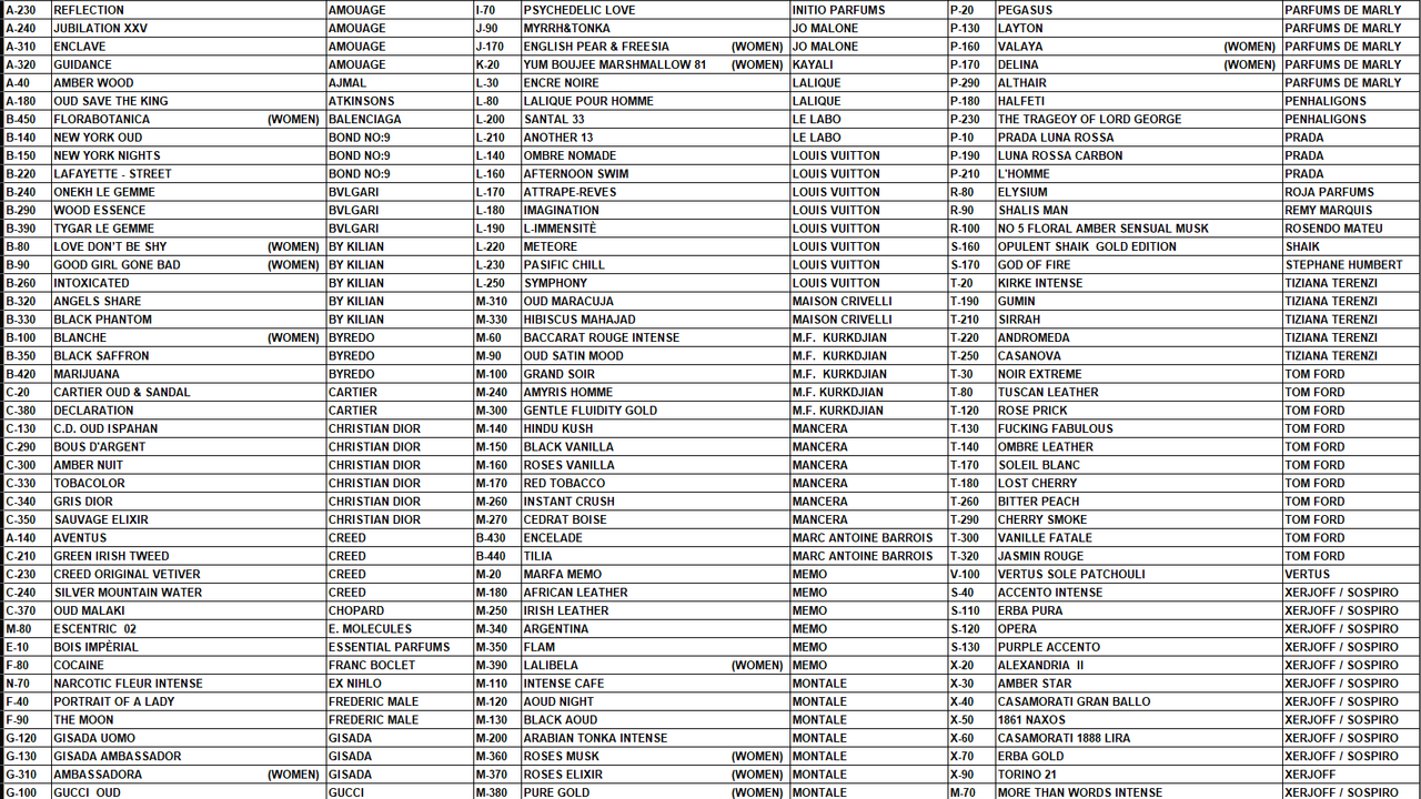 BE Parfüm Kodları (Prive) ve Muadil Listesi