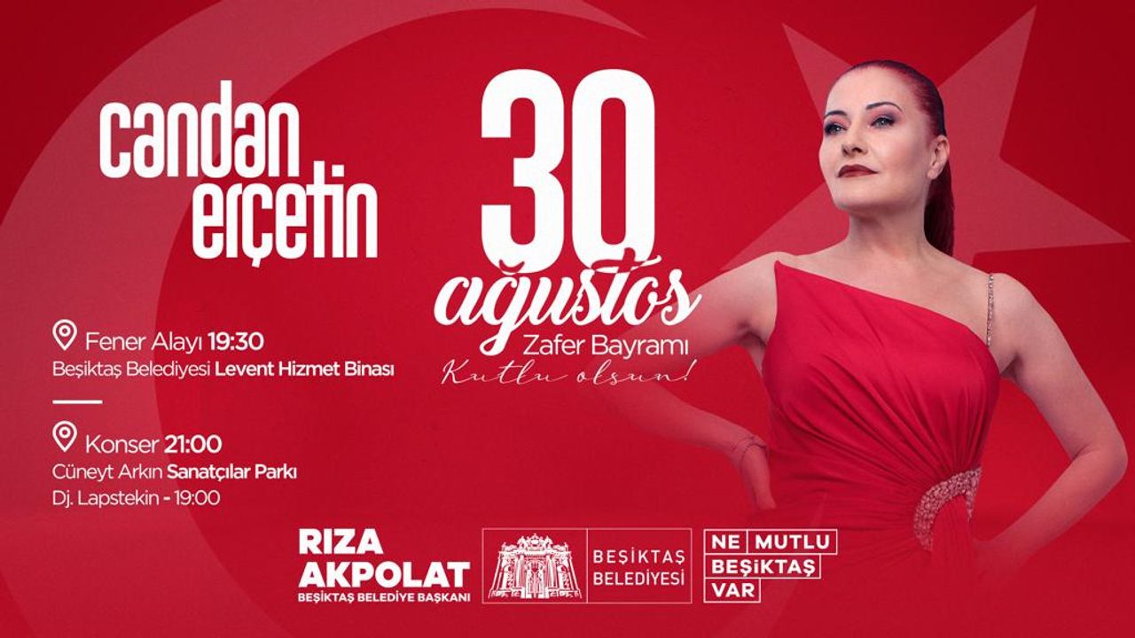 Yapılan Fener alayı yürüyüşünden sonra Dj. Lapstekin’in müzikleriyle coşacak Beşiktaşlılar saat 21.00’da sahneye çıkacak ünlü sanatçı Candan Erçetin’le 30 Ağustos Zafer Bayramı’nı doyasıya kutlayacak.