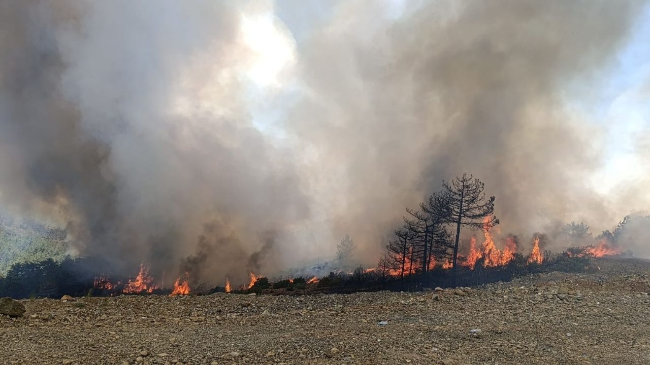 Havadan ve karadan müdahaleyle yangının ilerleyişi durdurulmaya çalışılıyor.