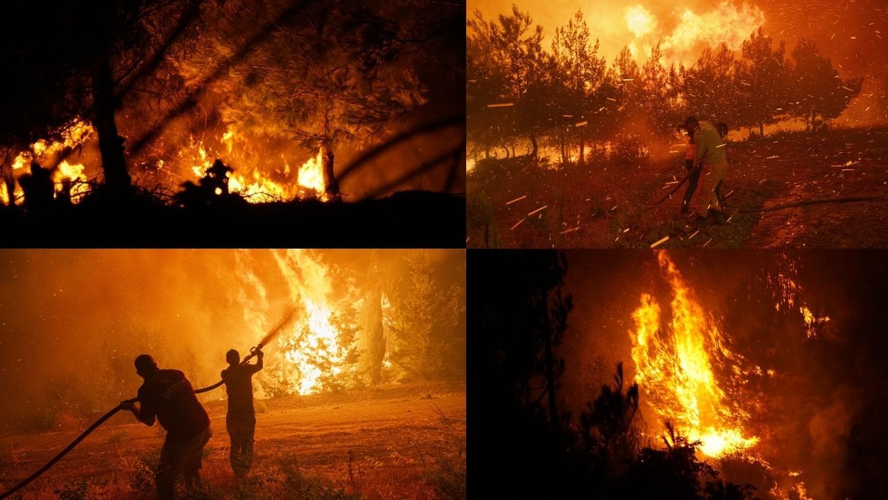 Bazı binalar alevler arasında kalırken, bölge sakinleri de su tankerleriyle söndürme çalışmalarına destek vermeyi sürdürüyor.
