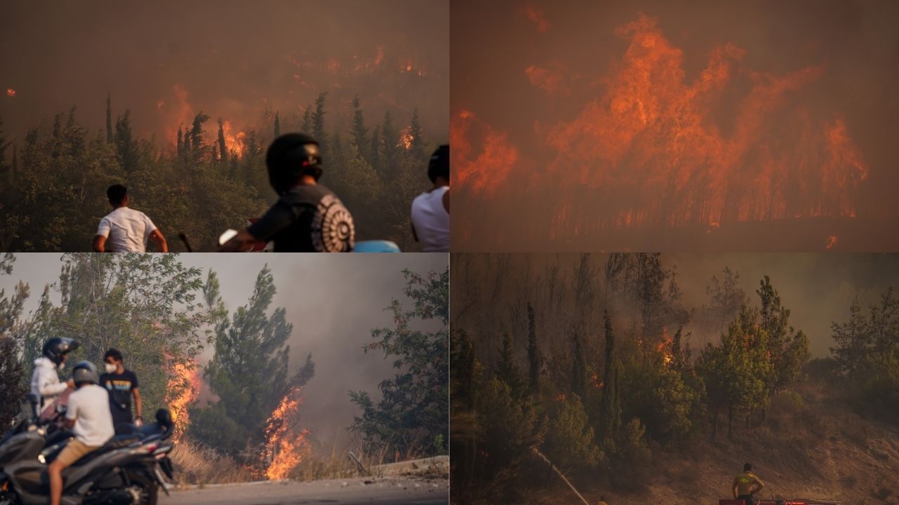 Ekipler, havadan ve karadan müdahaleyle yangını kontrol altına almaya çalışıyor.