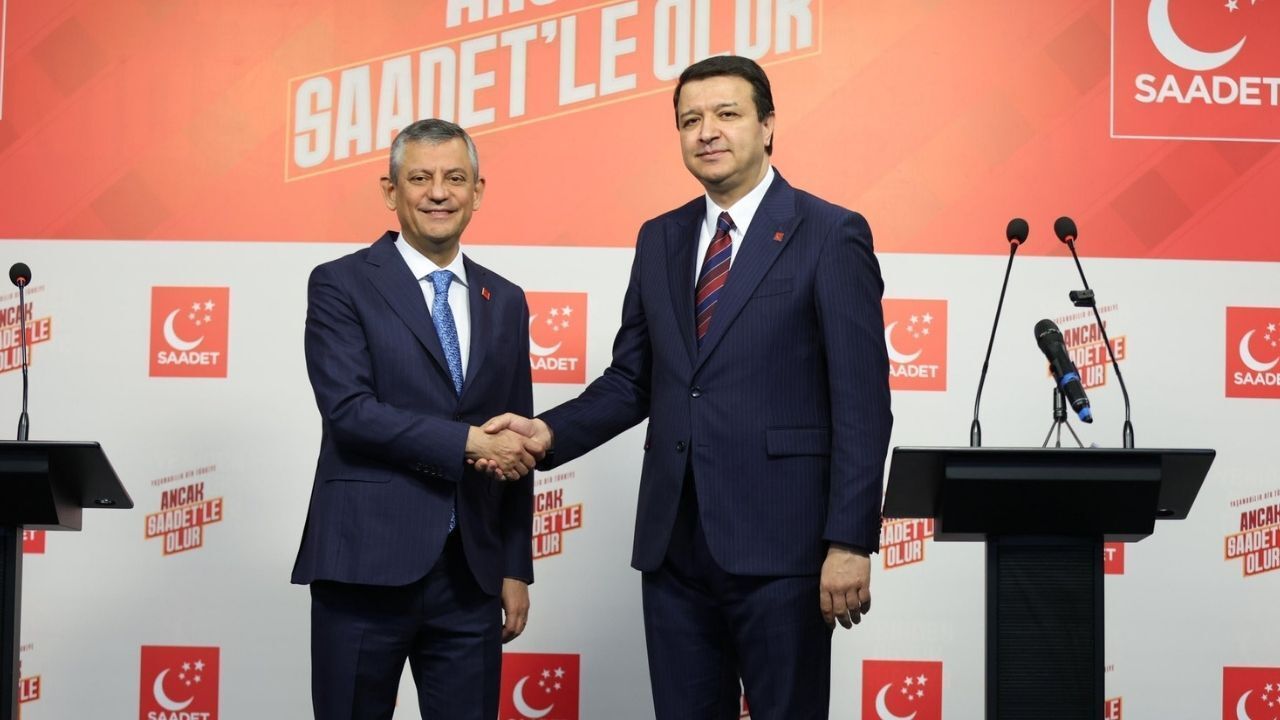Saadet Partisi Genel Başkanı Mahmut Arıkan, Cumhuriyet Halk Partisi Genel Başkanı Özgür Özel ile Saadet Partisi Genel Merkezi’nde bir araya geldi.