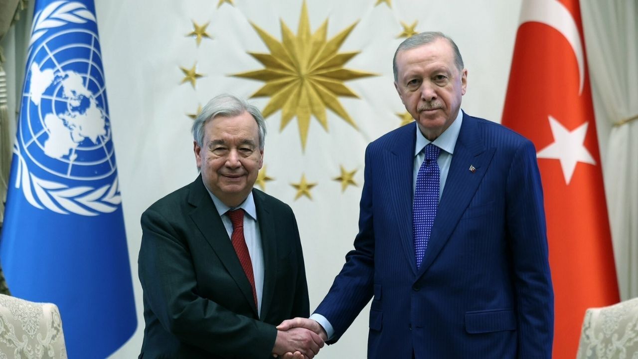 Cumhurbaşkanlığı’nın resmi sosyal medya hesabından yapılan paylaşımda, Cumhurbaşkanı Erdoğan’ın, BM Genel Sekreteri Guterres ile biraraya geldiği bildirildi. Cumhurbaşkanlığı’nın paylaşım şöyle: