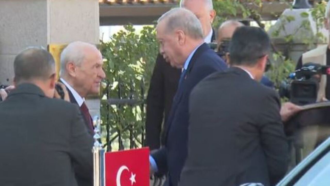 Bahçeli, Erdoğan'ı kapıda karşıladı. Erdoğan ve Bahçeli'nin görüşmesi başladı.