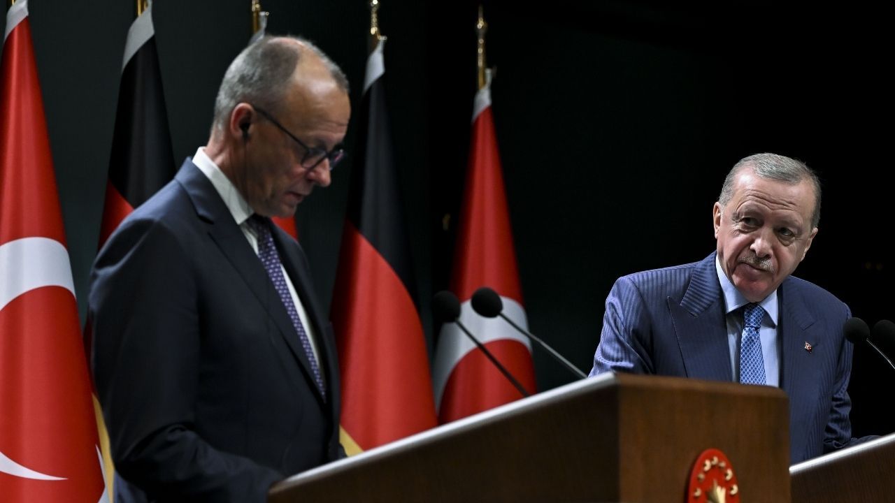 Erdoğan, Cumhurbaşkanlığı Külliyesi'nde, baş başa ve heyetler arası görüşme sonrasında Almanya Başbakanı Friedrich Merz ile ortak basın toplantısı düzenledi.