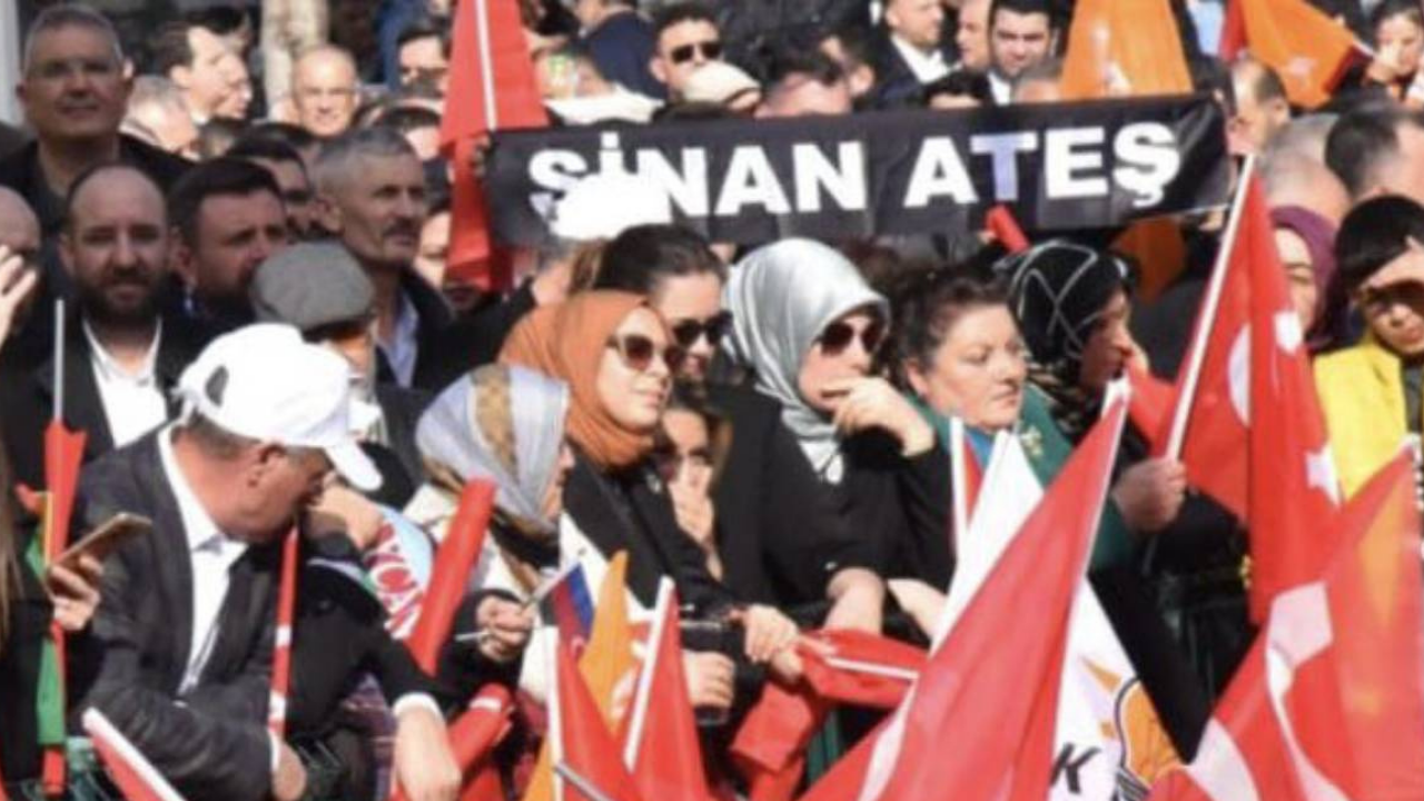 Erdoğan’ın dinleyen kalabalık içinde, Ankara’da öldürülen eski Ülkü Ocakları Başkanı Sinan Ateş’in adının yazılı olduğu atkıları açtı. Atkıları, Erdoğan’ın konuştuğu sahneye doğru tutan vatandaşlar; “Sinan için adalet” ve “Duyun sesimizi artık” diye bağırdı. Bazı pankartların toplanmaya çalışıldığı görüldü.