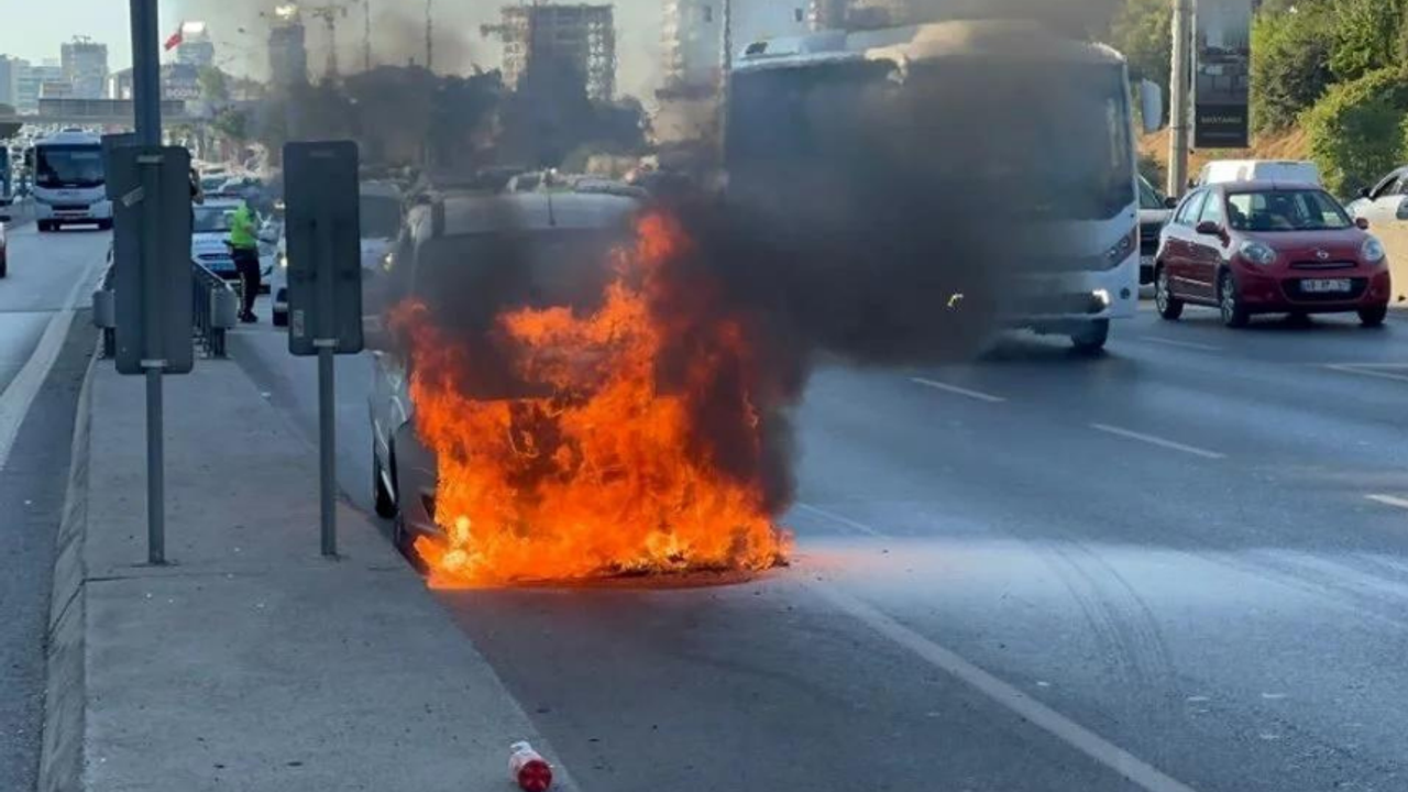 Yangın, Maltepe D-100 Karayolu Kadıköy istikametinde sabah 08.00 sıralarında meydana geldi.