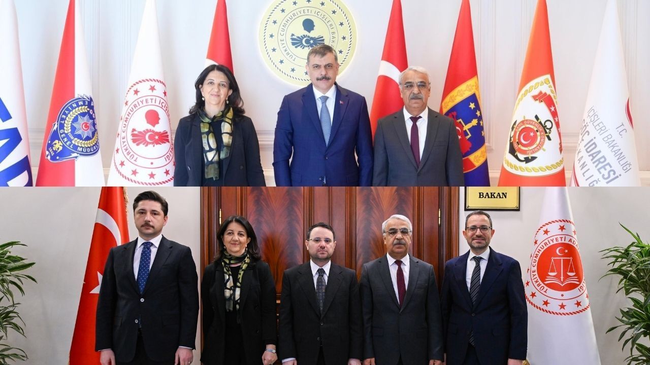 TBMM Başkanvekili Pervin Buldan ve DEM Parti Şanlıurfa Milletvekili Mithat Sancar'dan oluşan DEM Parti İmralı Heyeti, İçişleri Bakanı Mustafa Çiftçi'yi İçişleri Bakanlığı'nda ziyaret etmesinin ardından Adalet Bakanı Akın Gürlek'i Adalet Bakanlığı'nda görüştü.