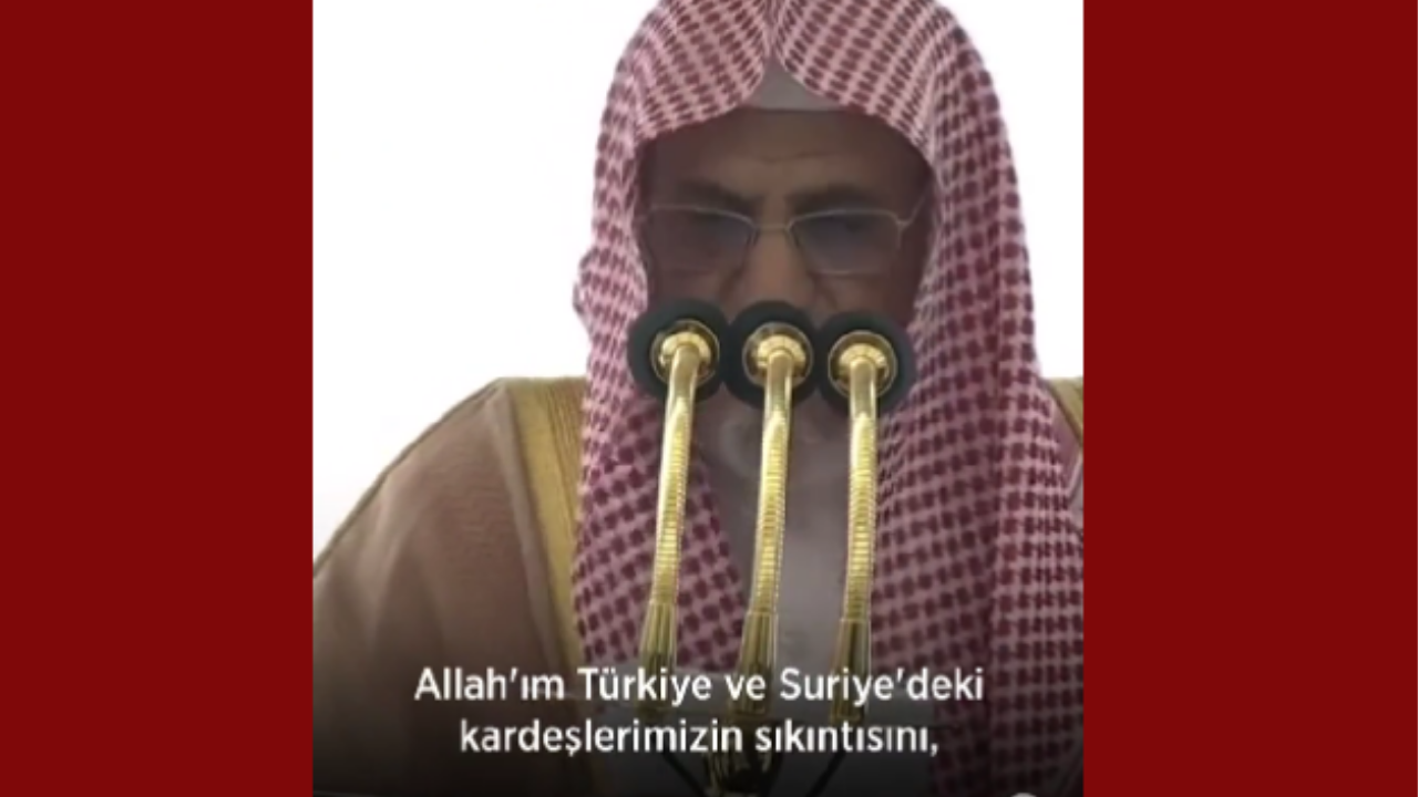 Müslümanların kıblesi ve en kutsal mabedi olarak kabul edilen Kabe'de okunan cuma hutbesinde depremzedeler için dua eden Şeyh Humeyd, gözyaşlarına boğuldu.