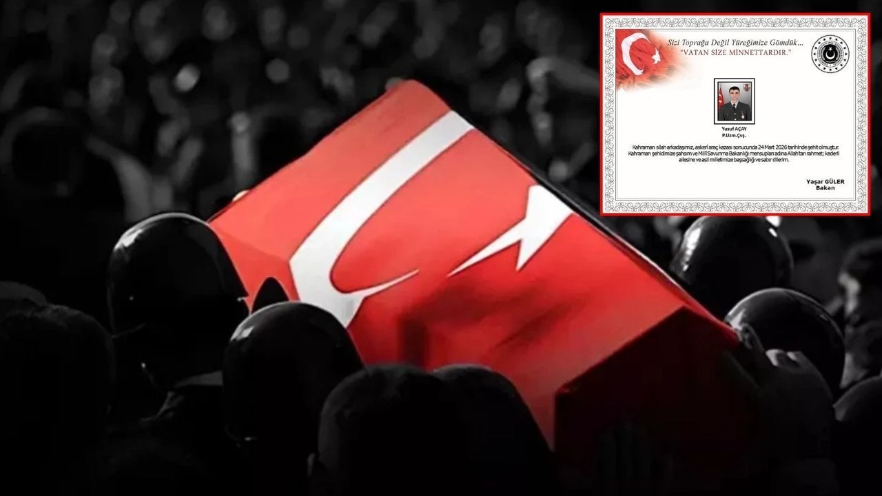 Milli Savunma Bakanlığı'ndan yapılan açıklamada, "24 Mart 2026 tarihinde Ağrı / Doğubeyazıt’ta meydana gelen askerî araç kazasında, kahraman silah arkadaşımız Piyade Uzman Çavuş Yusuf AÇAY şehit olmuştur" denildi.
