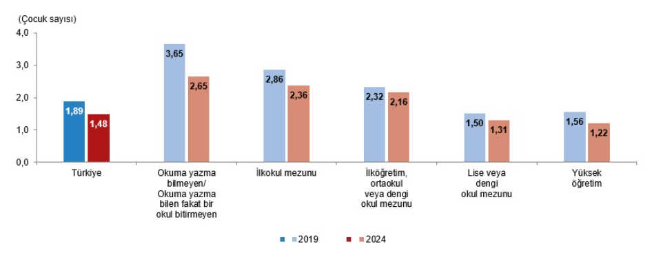 Yüksek öğretim mezunu annelerin toplam doğurganlık hızı 2024 yılında 1,22 çocuk oldu