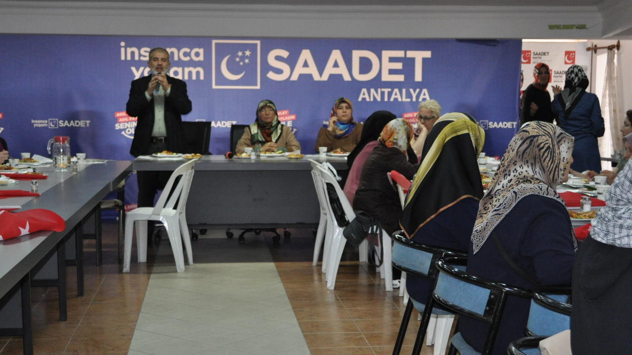 Saadet Partisi Antalya İl Kadın Kolları Başkanlığınca teşkilat binasında tertiplenen kahvaltılı toplantıya katılan Saadet Partisi İl Başkanı Ramazan Düzen seçim gündemi ile ilgili açıklamalarda bulundu.