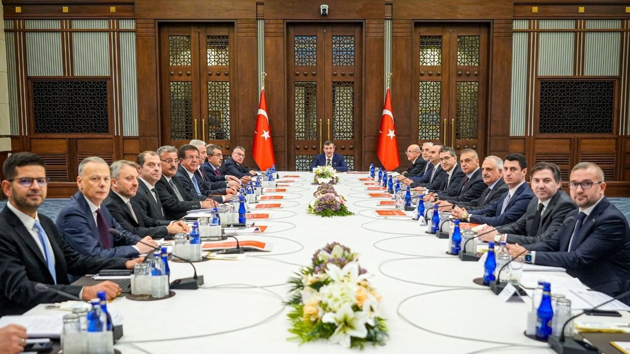 Cumhurbaşkanlığı Külliyesi'ndeki toplantıya, Hazine ve Maliye Bakanı Mehmet Şimşek, Çalışma ve Sosyal Güvenlik Bakanı Vedat Işıkhan, Milli Eğitim Bakanı Yusuf Tekin, Sanayi ve Teknoloji Bakanı Mehmet Fatih Kacır, Ticaret Bakanı Ömer Bolat, AK Parti Grup Başkanı Abdullah Güler, AK Parti Genel Başkanvekili Efkan Ala, AK Parti Genel Başkan Yardımcısı Nihat Zeybekci, Cumhurbaşkanlığı Strateji ve Bütçe Başkanı İbrahim Şenel ve Türkiye Cumhuriyet Merkez Bankası (TCMB) Başkanı Fatih Karahan katıldı.