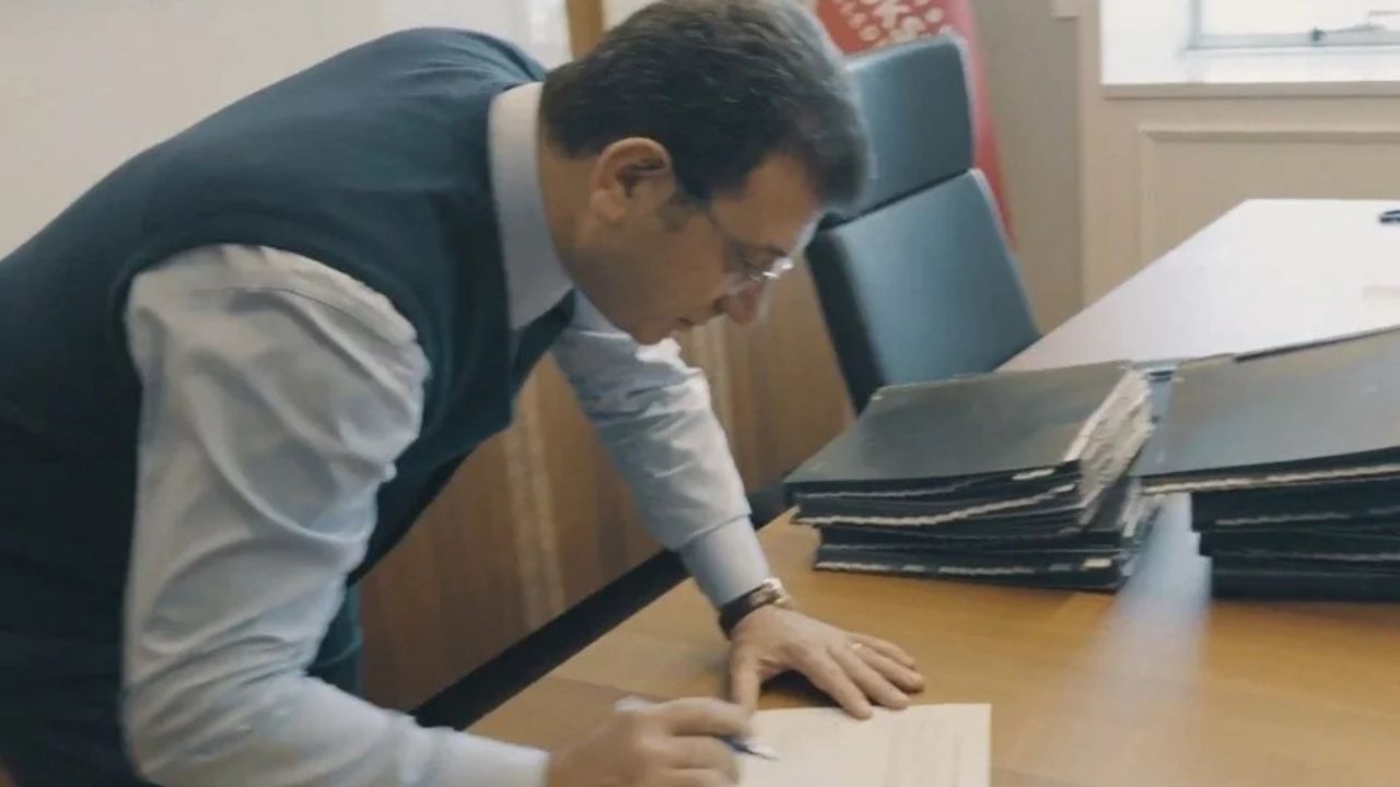 Ekrem İmamoğlu, başvuru evrağına imza attığı anları sosyal medya hesabından paylaştı.