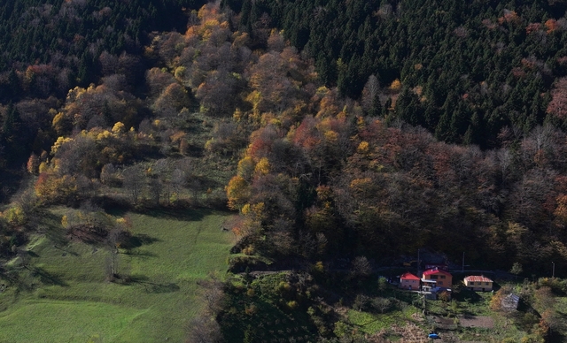 Trabzon'da doğal güzelliklerinin yanı sıra sütlacıyla ünlü Hamsiköy, sonbahar renklerinin hakim olduğu bugünlerde yılların izini taşıyan oyuk ağaçlarıyla öne çıkıyor