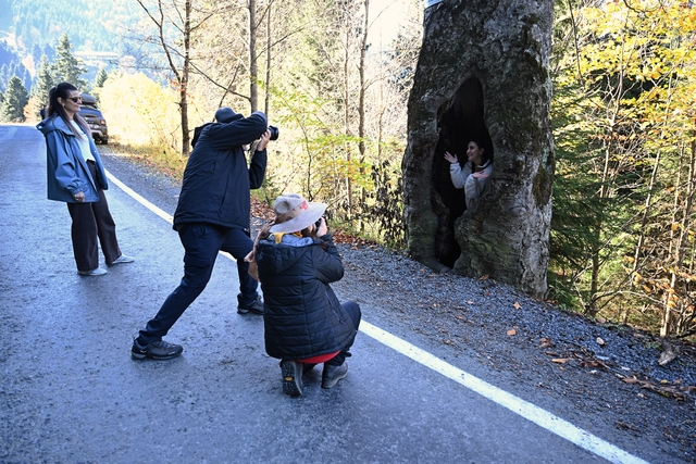 Bölgeyi ziyaret eden doğa ve fotoğraf tutkunları, sararan yaprakların arasında yükselen bu ağaçları objektiflerine yansıtarak, doğanın estetik dokusunu ölümsüzleştiriyor.