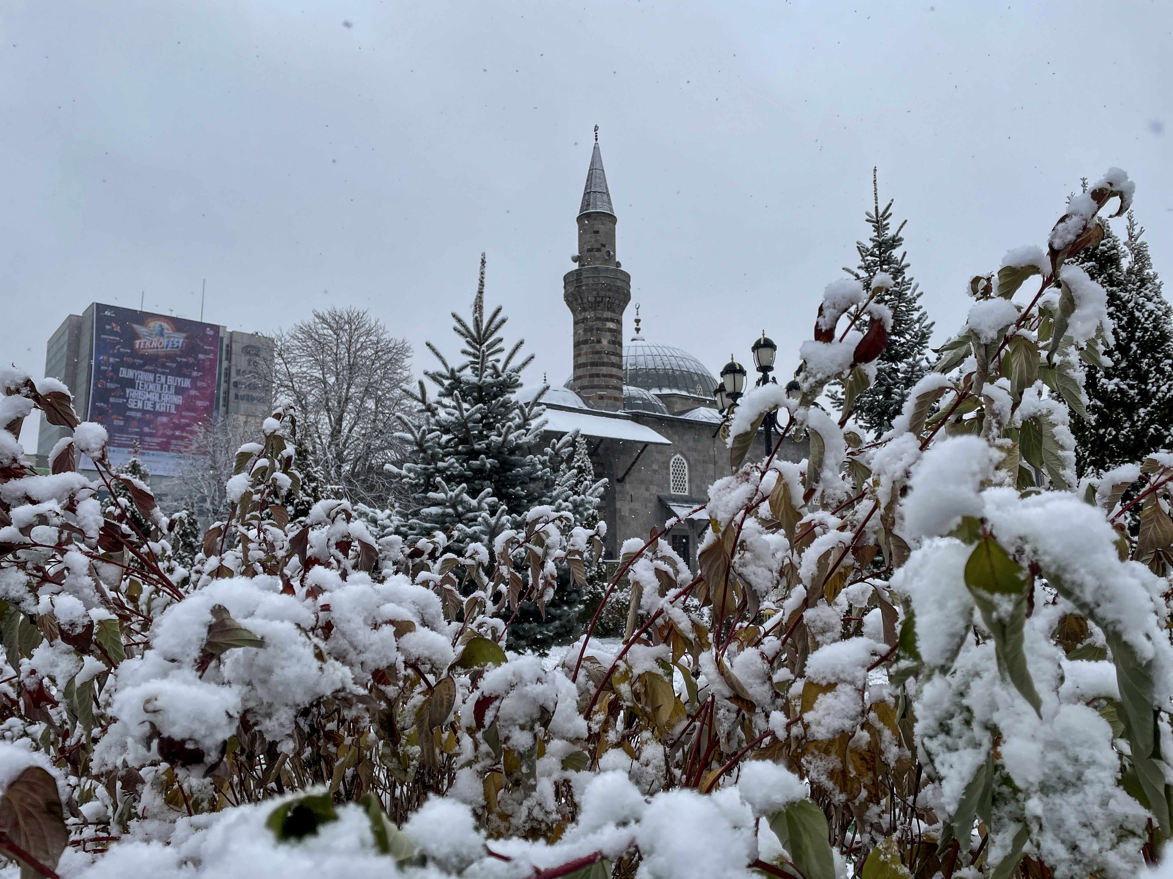 Kentte sabah saatlerinde başlayan kar, park ve bahçeleri beyaz örtüyle kapladı.