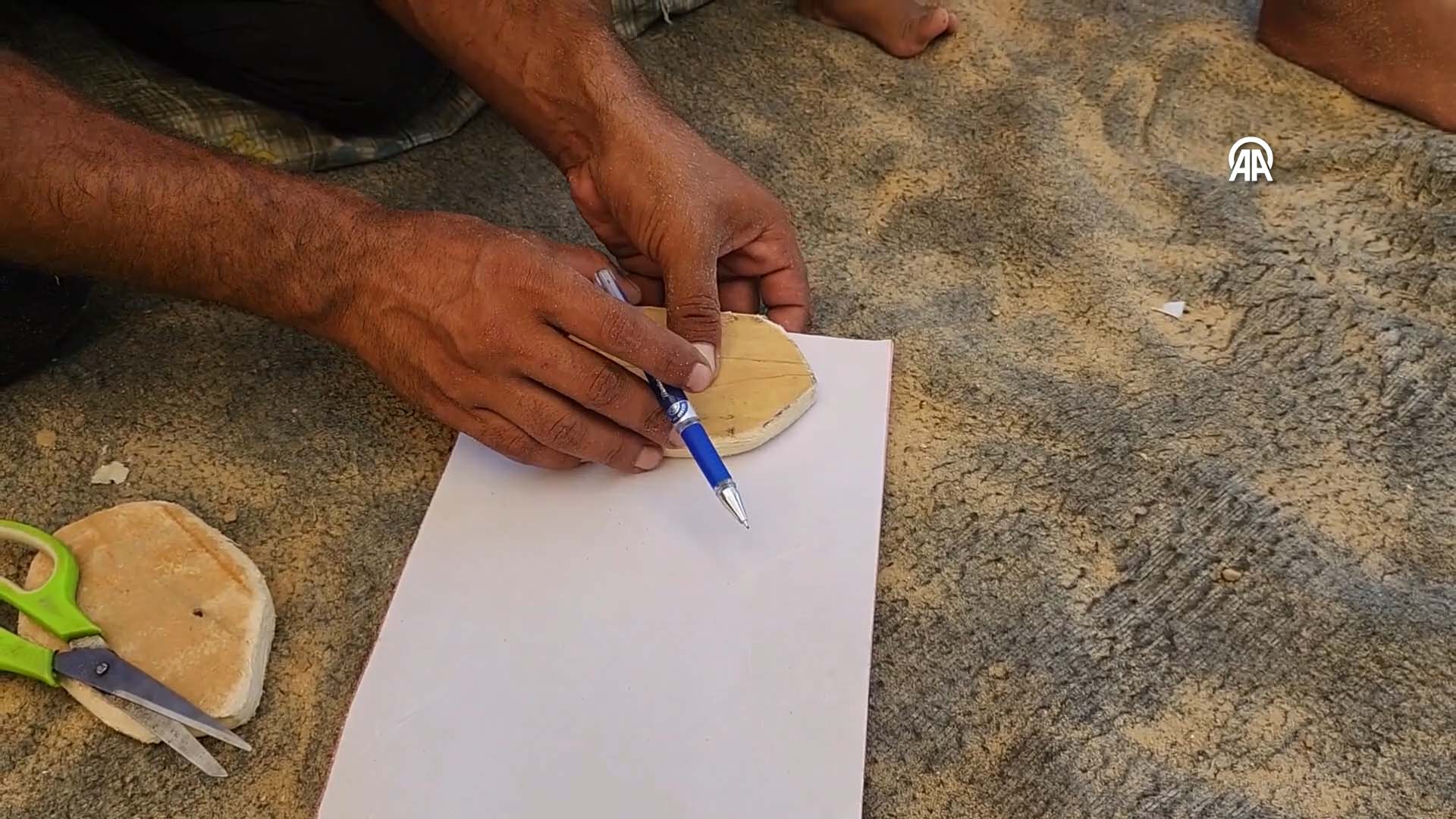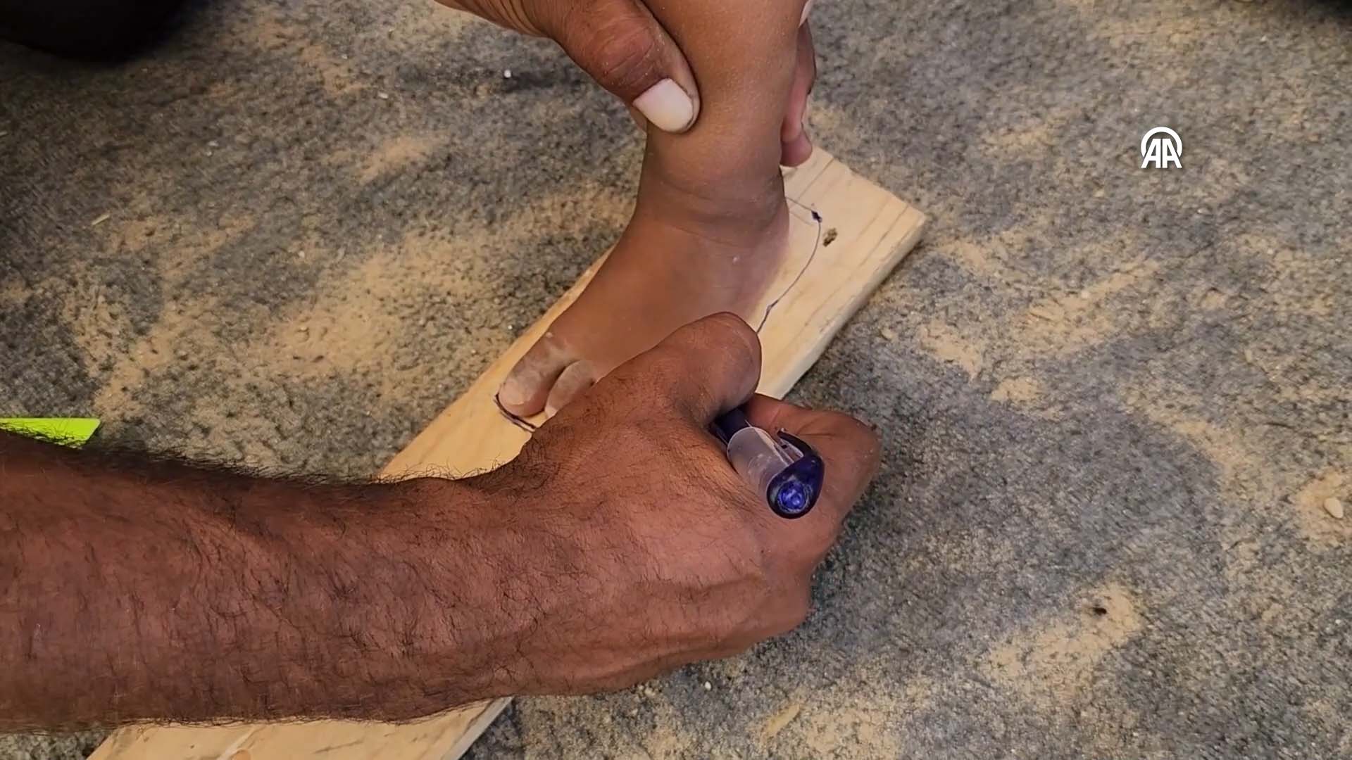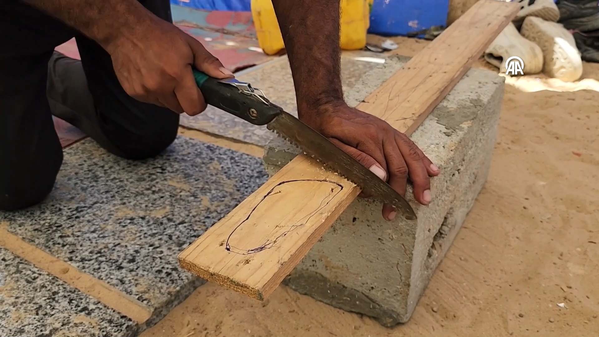 Filistinli ayakkabı ustası, İsrail saldırıları altındaki Gazze'de çocuklara tahtadan terlik yapıyor