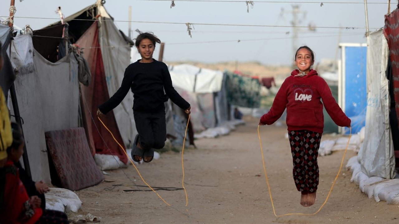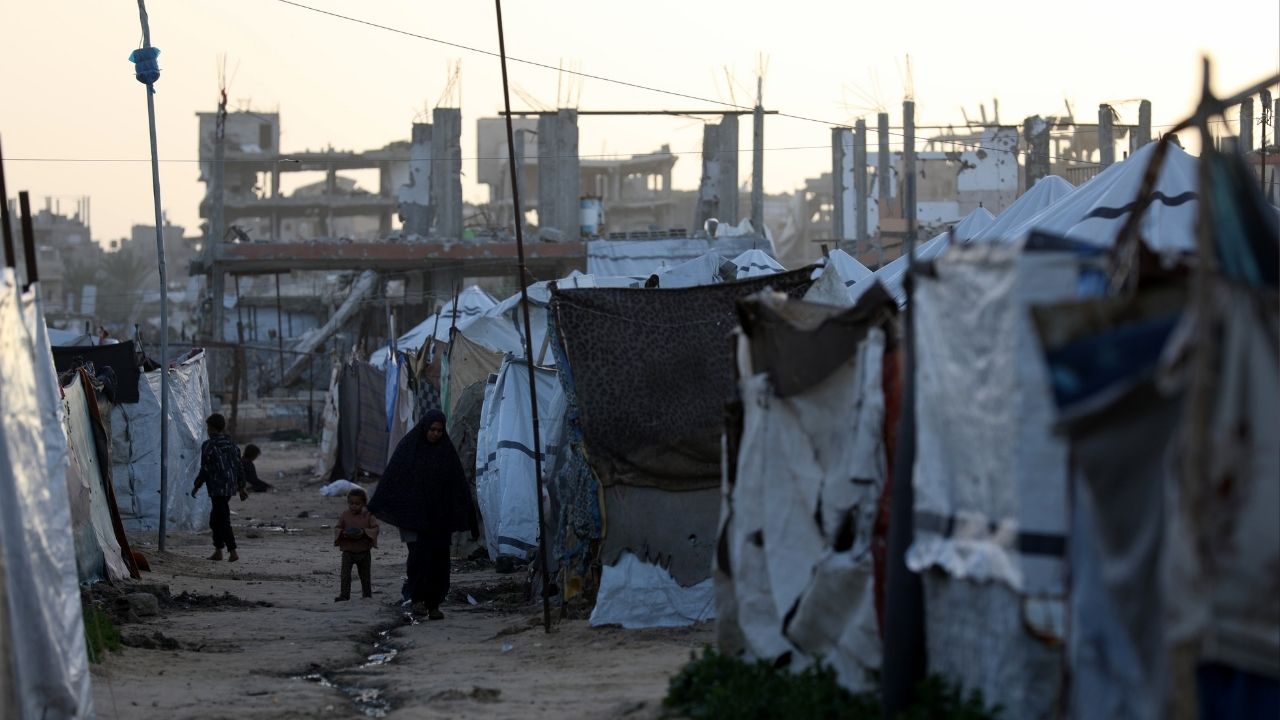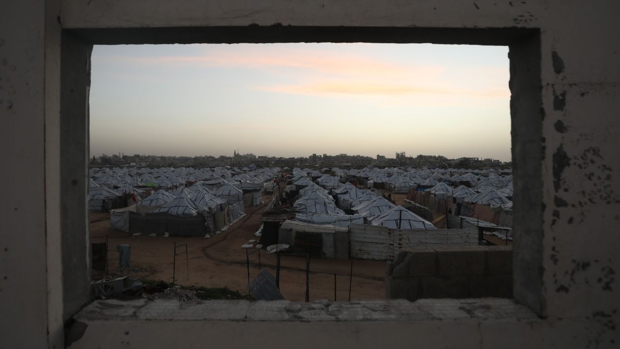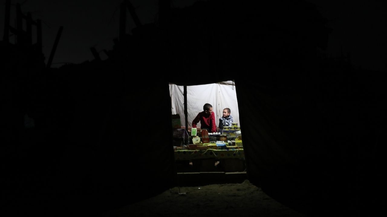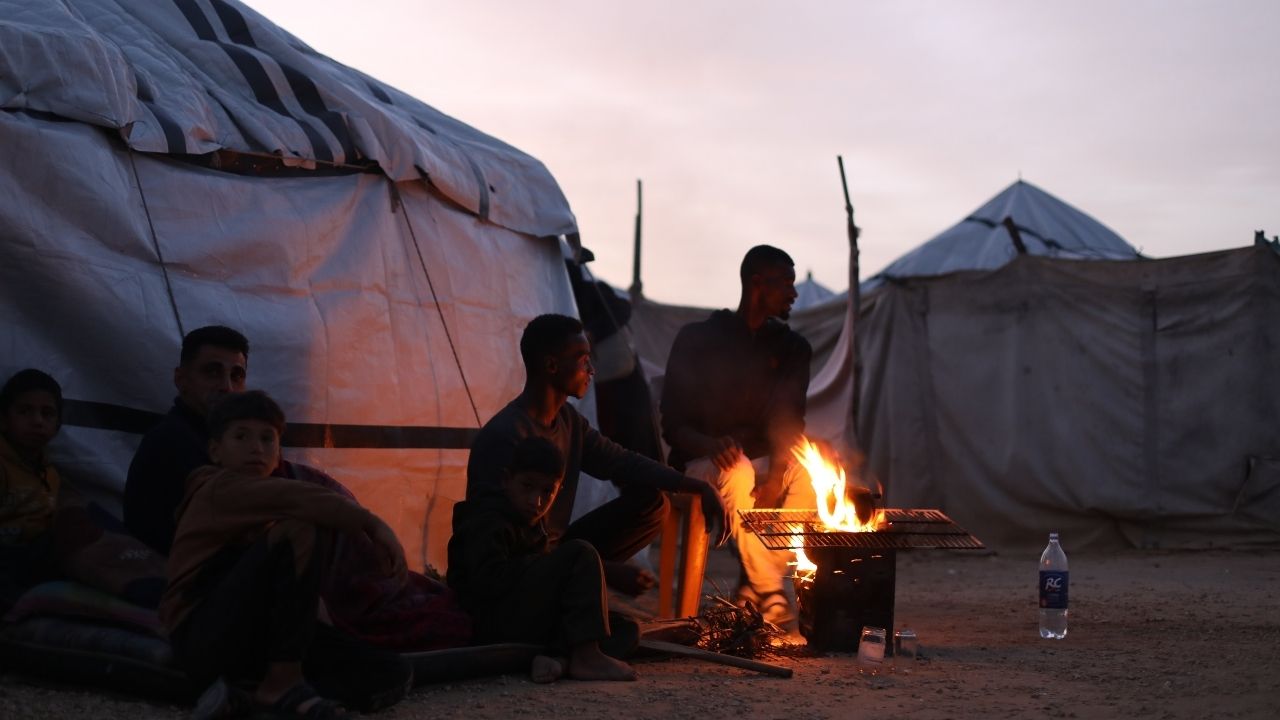 Gazze Şeridi’nin orta kesimindeki Nusayrat Mülteci Kampı’nda yerinden edilen siviller, enkaz arasına kurulan derme çatma çadırlarda zor koşullar altında yaşam mücadelesi veriyor. Savaşın yol açtığı ağır insani şartlar nedeniyle, sınırlı imkanlarla günlük hayatlarını sürdürmeye çalışıyor.