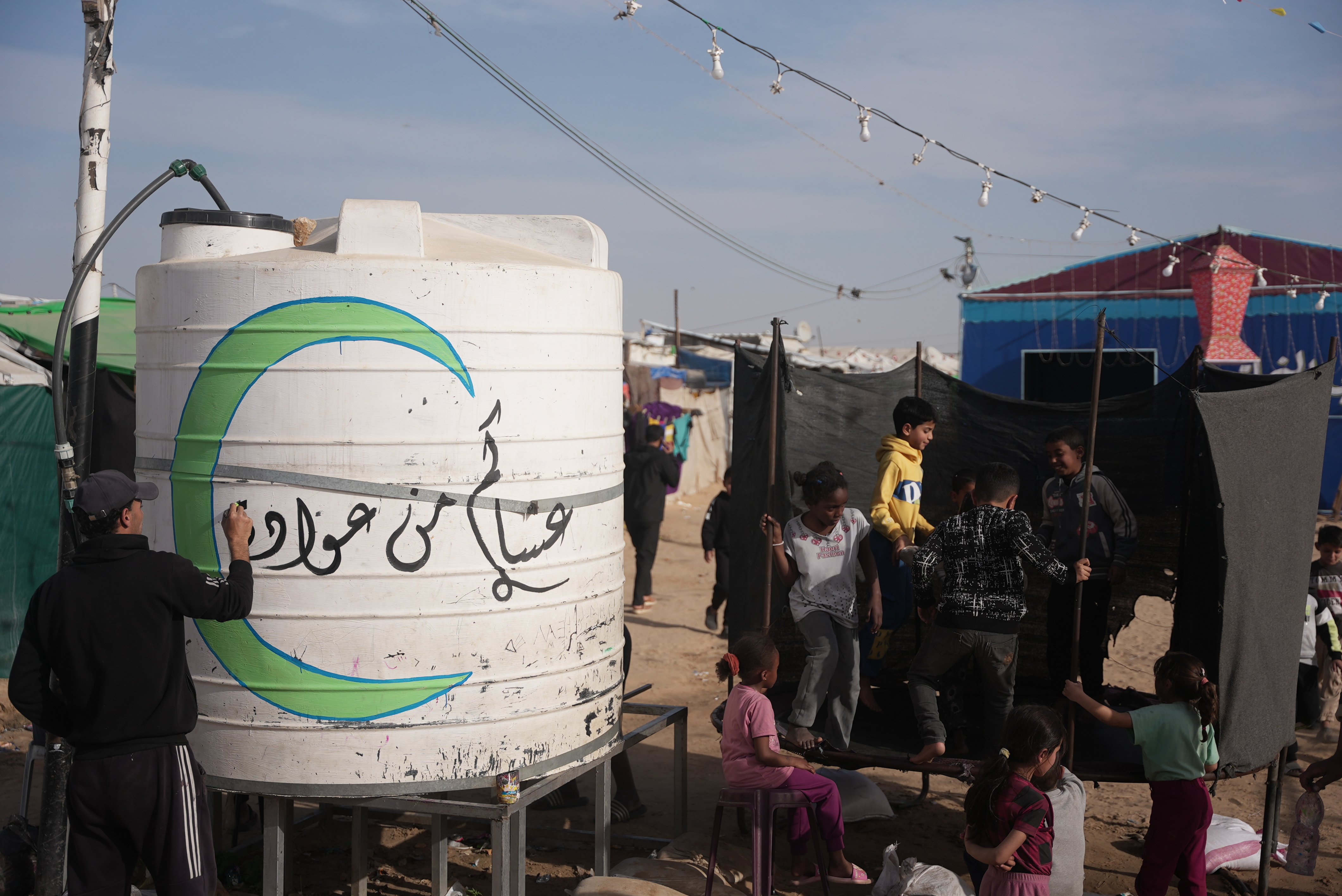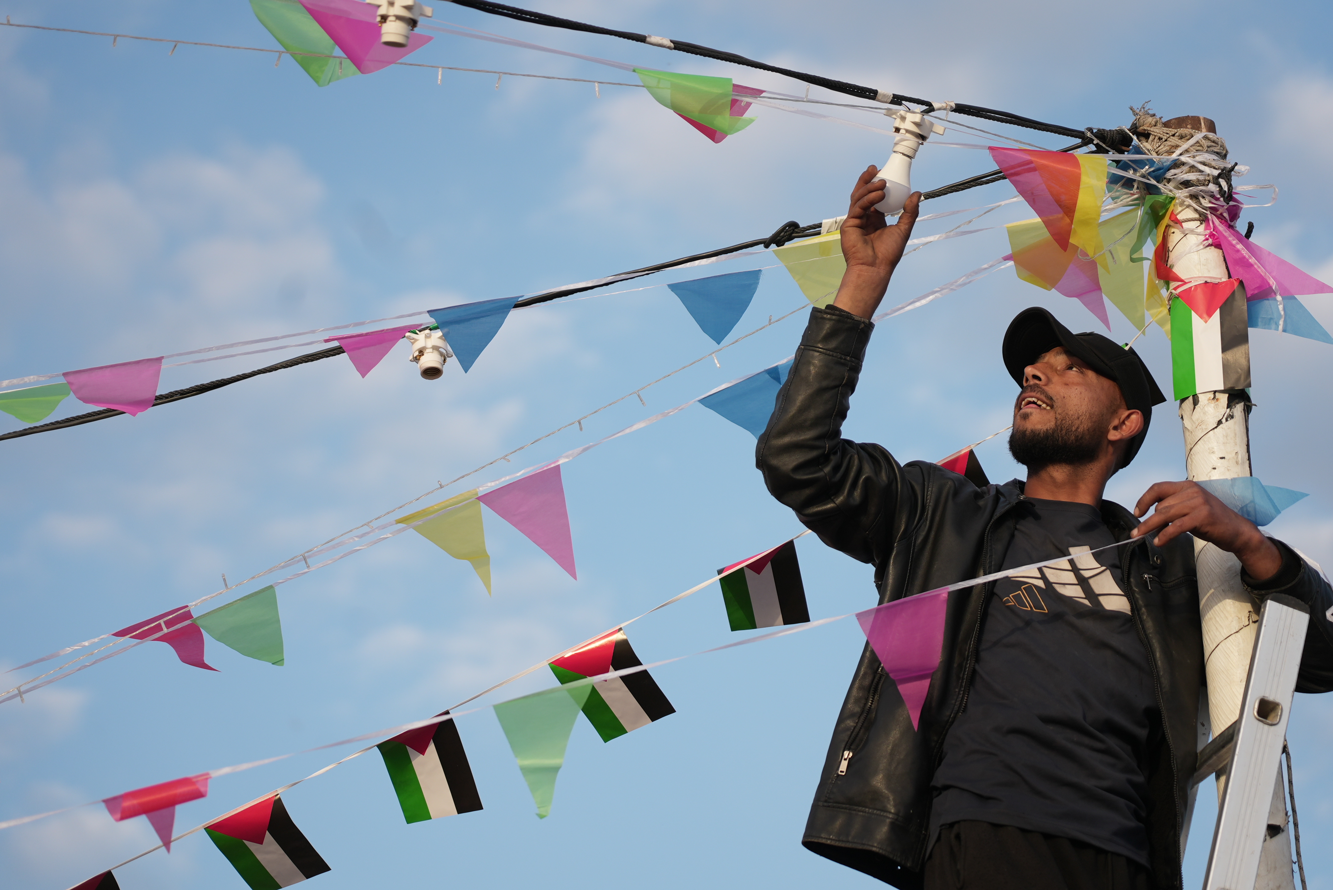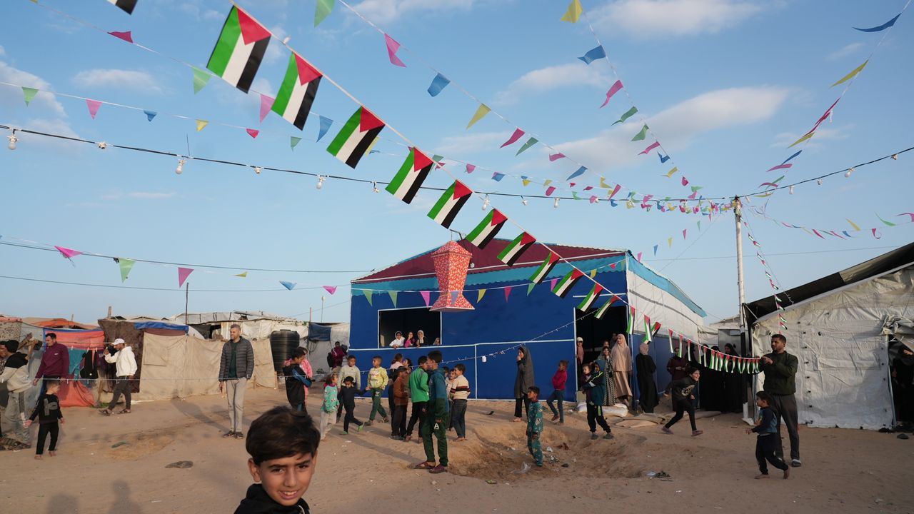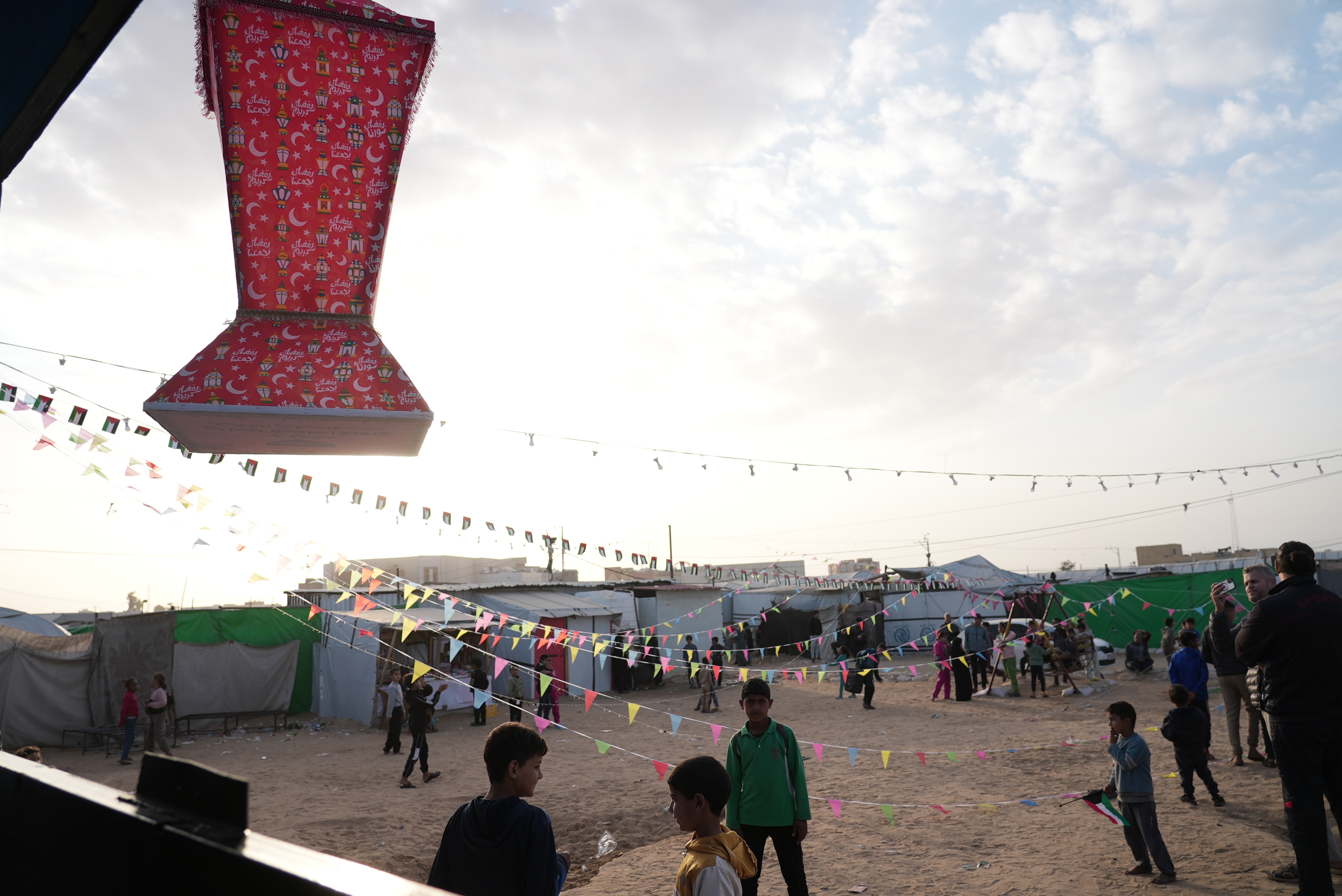 Gazze Şeridi’nin güneyindeki Han Yunus kentinde bulunan Necat Kampı, Ramazan öncesi süslemelerle donatılarak kamptaki Filistinlilere moral verdi.