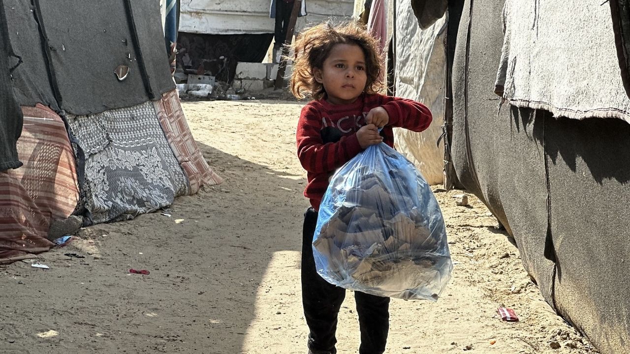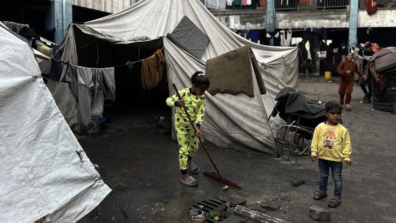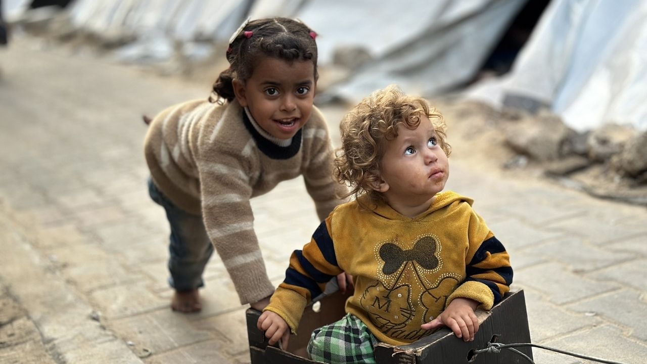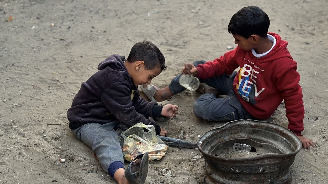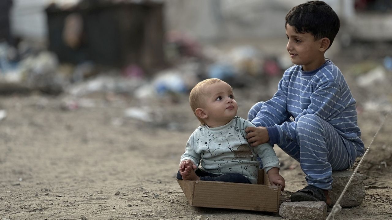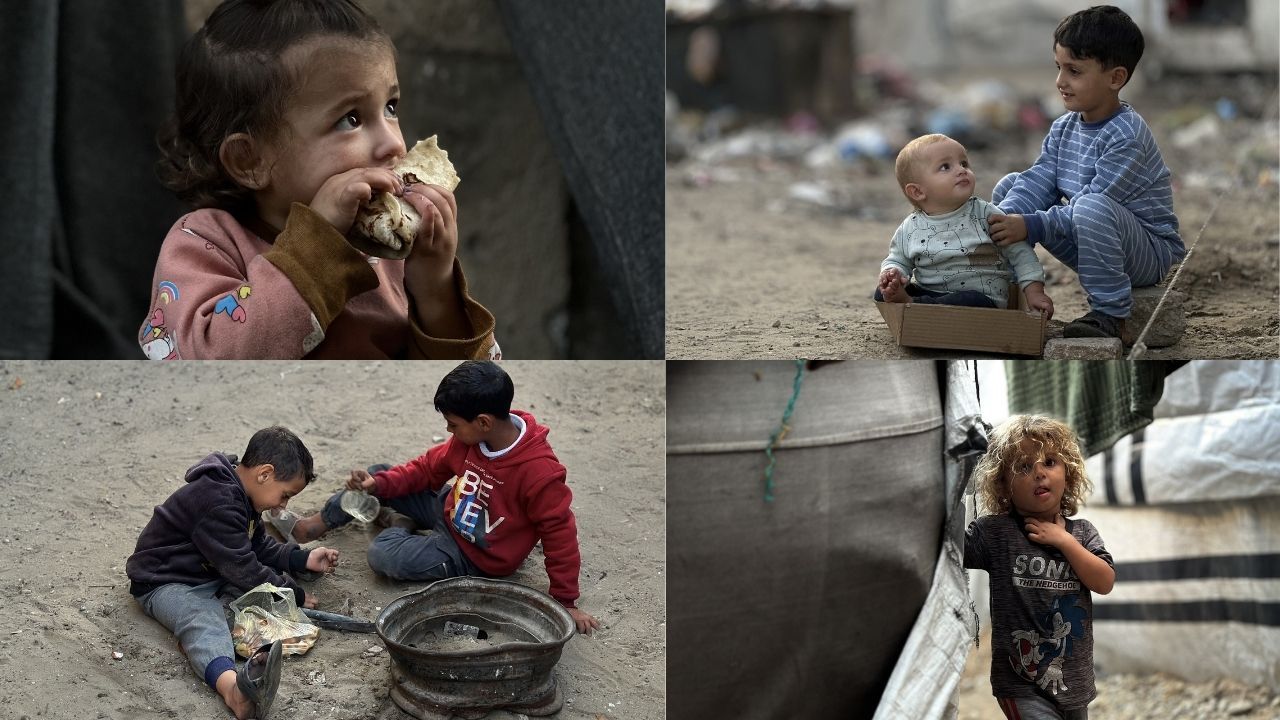 20 Kasım Dünya Çocuk Günü’nde Gazze Şeridi’nin güneyindeki Han Yunus kentindeki kamplarda yaşayan Filistinli çocuklar, İsrail saldırılarının yol açtığı ağır şartlar altında yaşamlarını sürdürmeye çalışıyor. Çadırlarda sınırlı imkânlarla büyümeye çalışan çocuklar, temiz su, gıda ve güvenli barınma gibi temel ihtiyaçlara erişimde büyük zorluklarla karşılaşıyor. Çocuklar, ailelerine destek olmak için bir yandan su ve yemek kuyruklarına giriyor diğer yandan küçük kardeşlerine bakıyor.