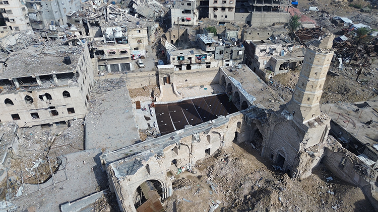 Gazze’de yürürlüğe giren ateşkesin ardından, İsrail ordusunun saldırılarında büyük ölçüde yıkıma uğrayan 14 yüzyıllık tarihe sahip olan "Büyük Ömer Camii" diğer bir adıyla "Gazze Ulu Camii", Filistin genelinde 3. büyük cami olma özelliğini taşıyor.