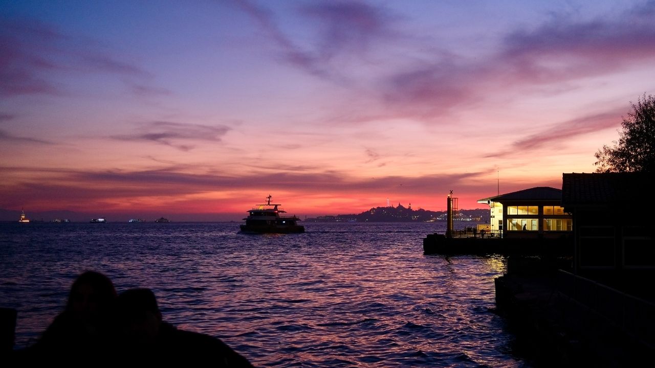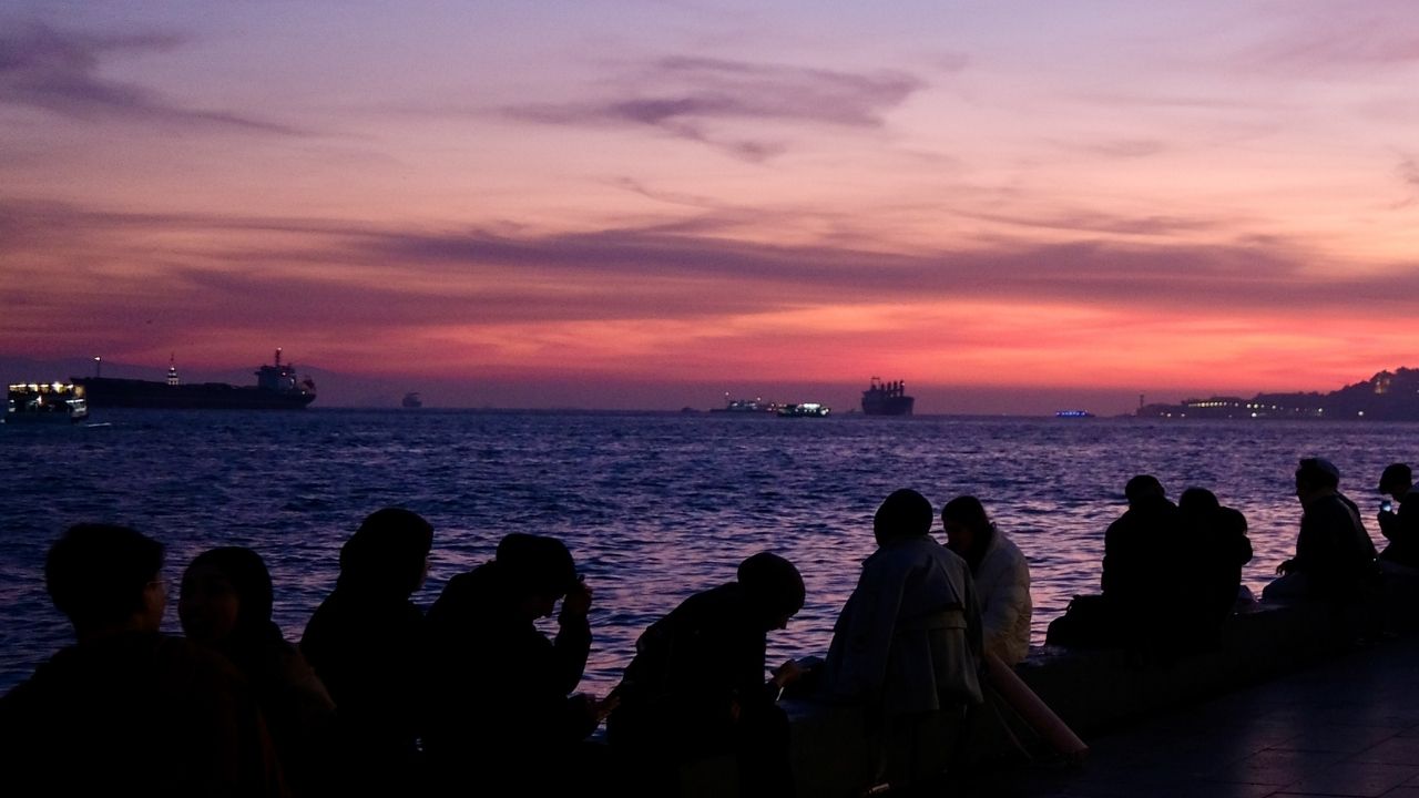 İstanbul'da gün batımı Beşiktaş sahilinden görüntülendi.