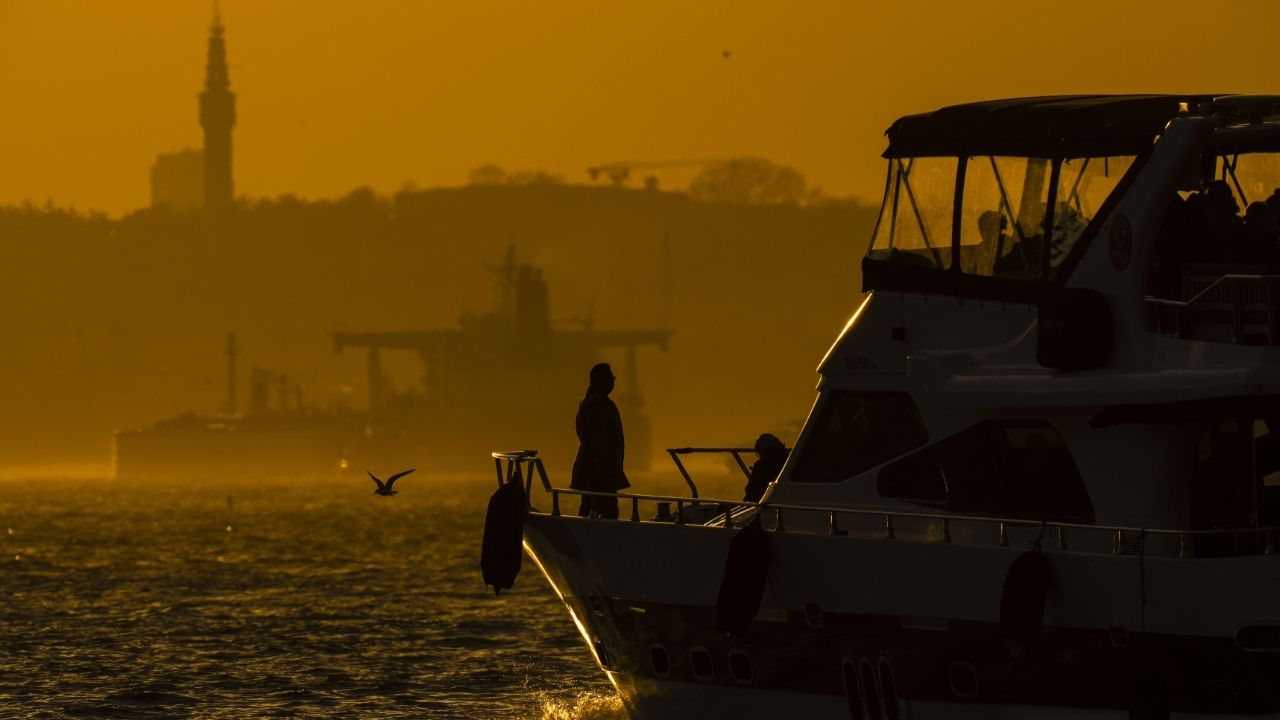 İstanbul'da gün batımı, Tarihi Yarımada ile görüntülendi.