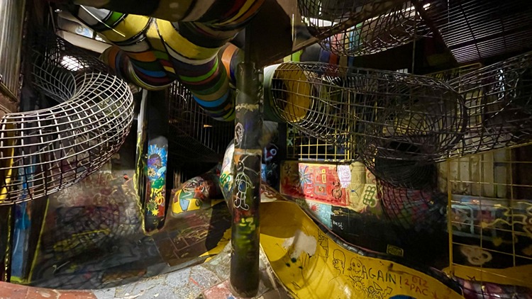 Trablus'un Hay Endülüs Mahallesi'ndeki hurda kafede sanat atölyeleri, resim sergileri ve kültürel etkinlikler icra ediliyor. Avizelerini savaştan kalan havan toplarının süslediği kafenin içinde hurda metal ve araç lastiklerinden inşa edilen bir çocuk parkı da yer alıyor.