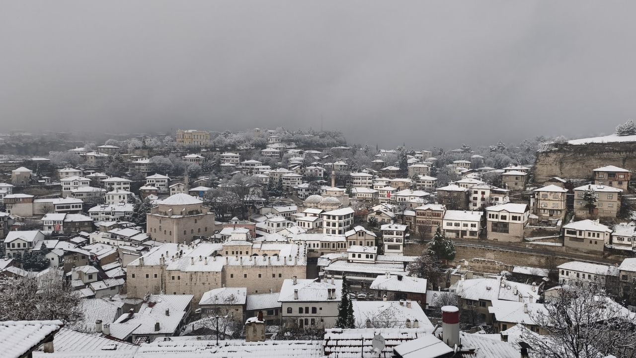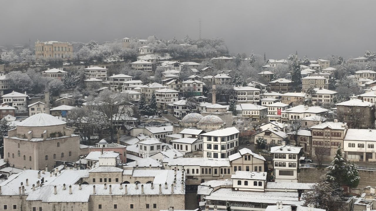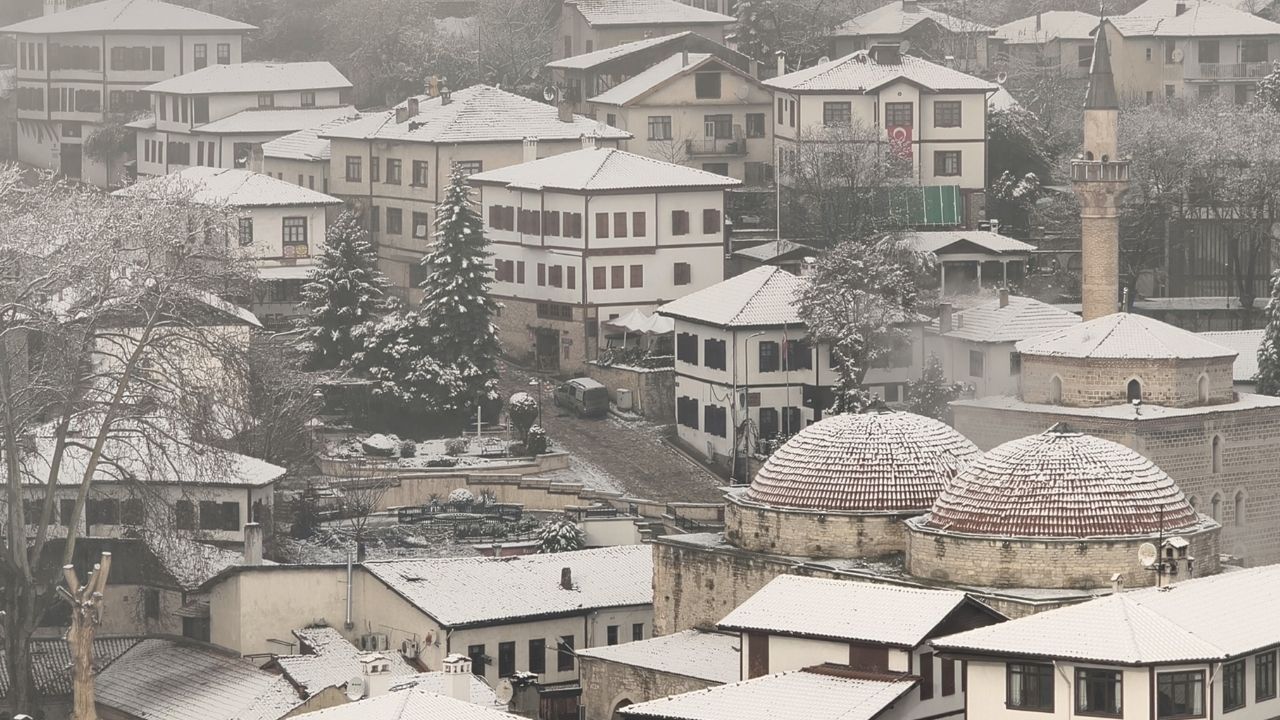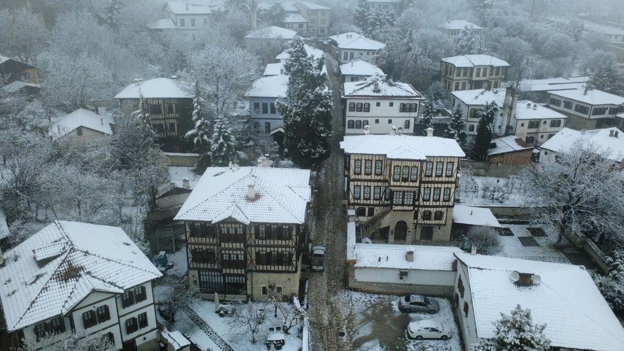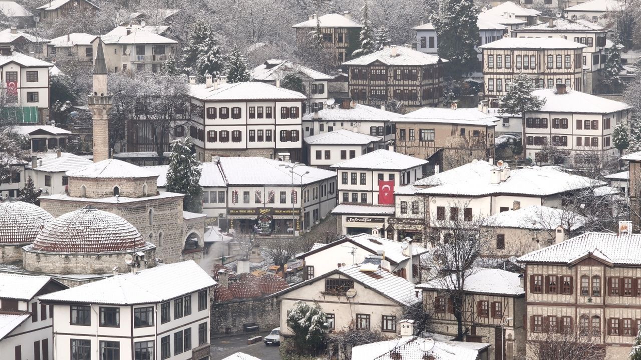 UNESCO Dünya Miras Listesi'nde yer alan Karabük'ün Safranbolu ilçesindeki tarihi konaklar kar yağışıyla beyaza büründü.