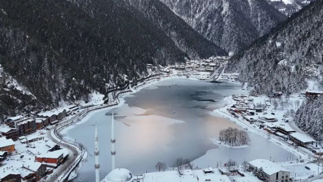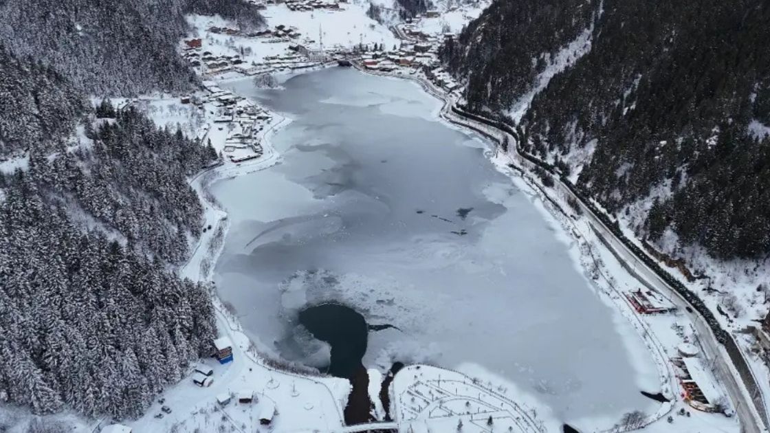 Trabzon'da bulunan Uzungöl, dondurucu soğukların ardından dondu.