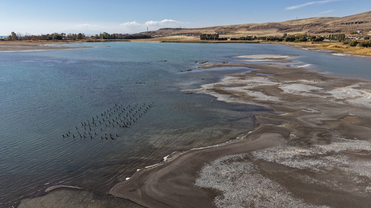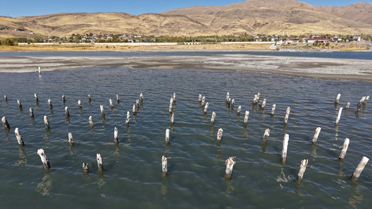 Kuraklık ve aşırı buharlaşma nedeniyle Van Gölü kıyılarında yaşanan çekilme, kıyı bölgelerinde dikkati çeken boyutlara ulaştı.
