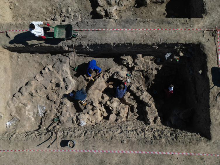 "Bu yılki çalışmalarımızda 2023'te açtığımız depo mekanının çevre temizliği sırasında, mekanın kuzey duvarına bitişik durumda bir fırın ve çömlekler tespit ettik. Bu in situ (Arkeolojide bir buluntunun, gündelik yaşamda kullanıldığı yerde ele geçmesi) haliyle korunmuş olduğundan bizim için çok önemli. Mutfak bölümünün yanında yer alan ve daha önce izinsiz kazılarla açılmış olan alanda yürütülen temizlik ve sondaj kazısında biraz daha derine inildi, orada da sondaj kesitinde taş temel üzerine kerpiçle devam eden bir duvar olduğunu gördük. Bu alanda muhtemelen Geç Kalkolitik Çağ'a tarihlendirilebilecek seramik parçaları çıktı. Bu da bizim için çok önemli."
