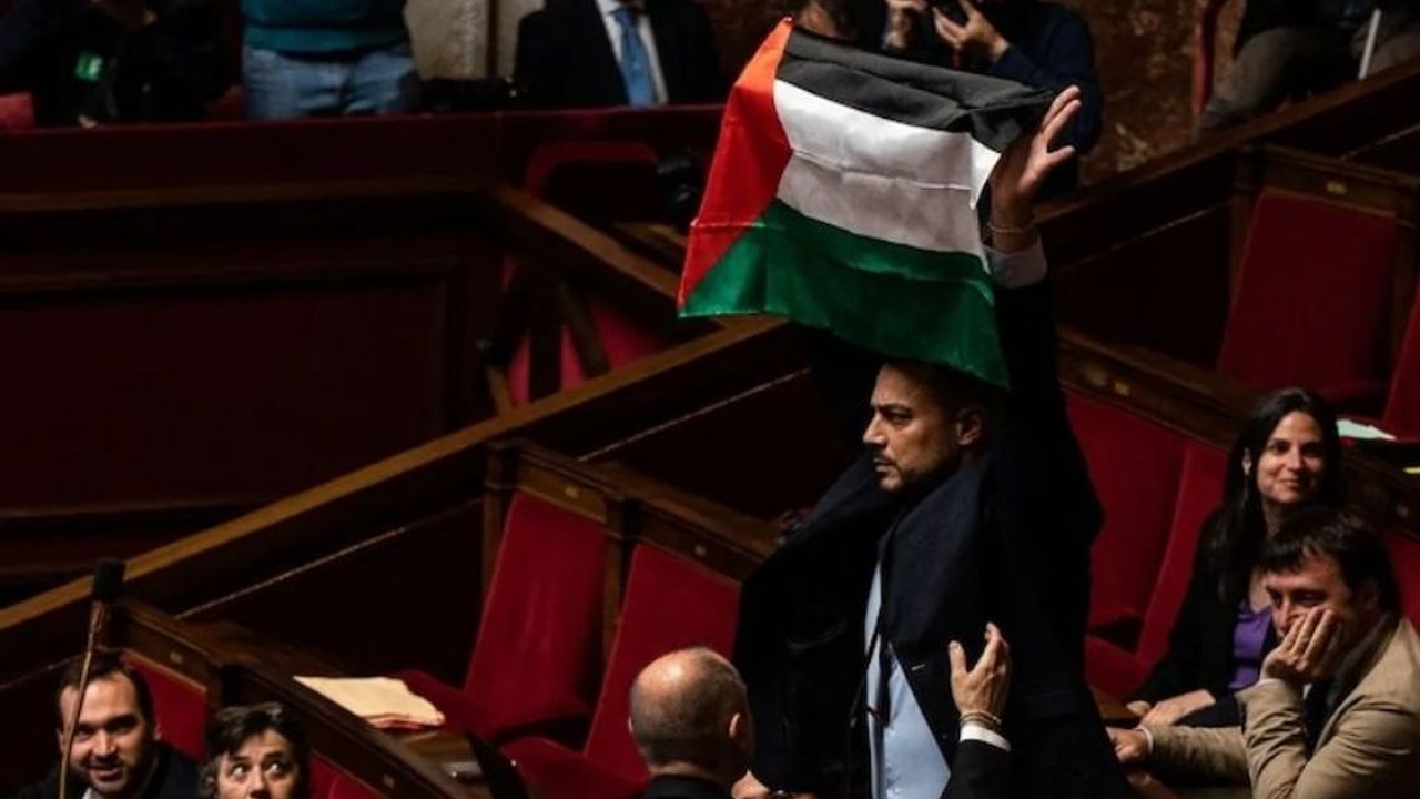 Fransa'da meclis haberlerini yayımlayan LCP kanalına göre, oturumda Filistin bayrağı açtığı için Delogu'ya 15 gün meclisten men cezası verildi.