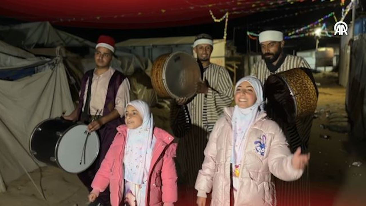 Ramazan için süslenen çadırların arasında, sahur vakti ramazan davulcusuna eşlik eden Filistinli çocuklar ilahiler ve dualar eşliğinde dolaştı. Geleneksel seslenişlerin yankılandığı kampta, çocukların neşesi ve coşkusu geceye renkli ve umut dolu görüntüler kattı.