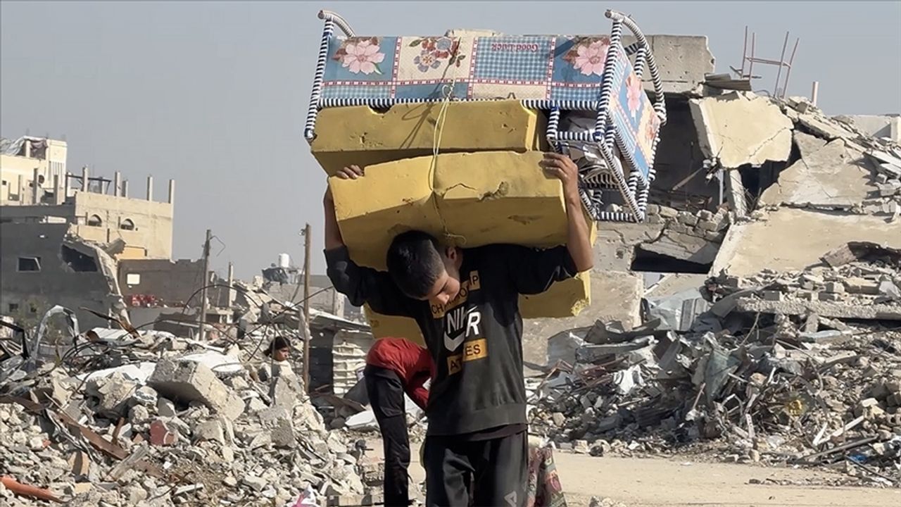 Yerinden edilmiş Filistinliler, İsrail saldırılarında yıkılan evlerine tüm bu tehlikeye rağmen temel ihtiyaçlarını bulma umuduyla dönmeye devam ediyor.