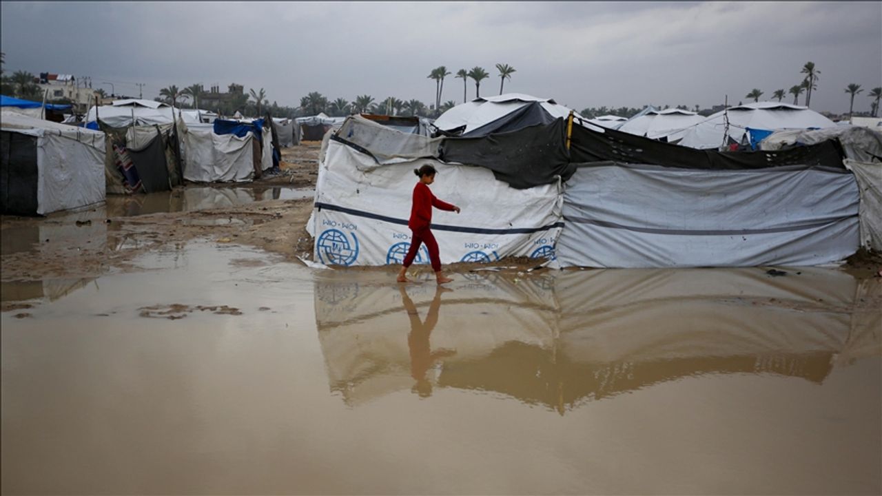 Soykırım saldırılarında evlerin yüzde 90'ının yıkıldığı Gazze'de gece saatlerinde başlayan şiddetli yağışlar, derme çatma çadırlarda hayatta kalma mücadelesi veren binlerce Filistinli aileyi vurdu.