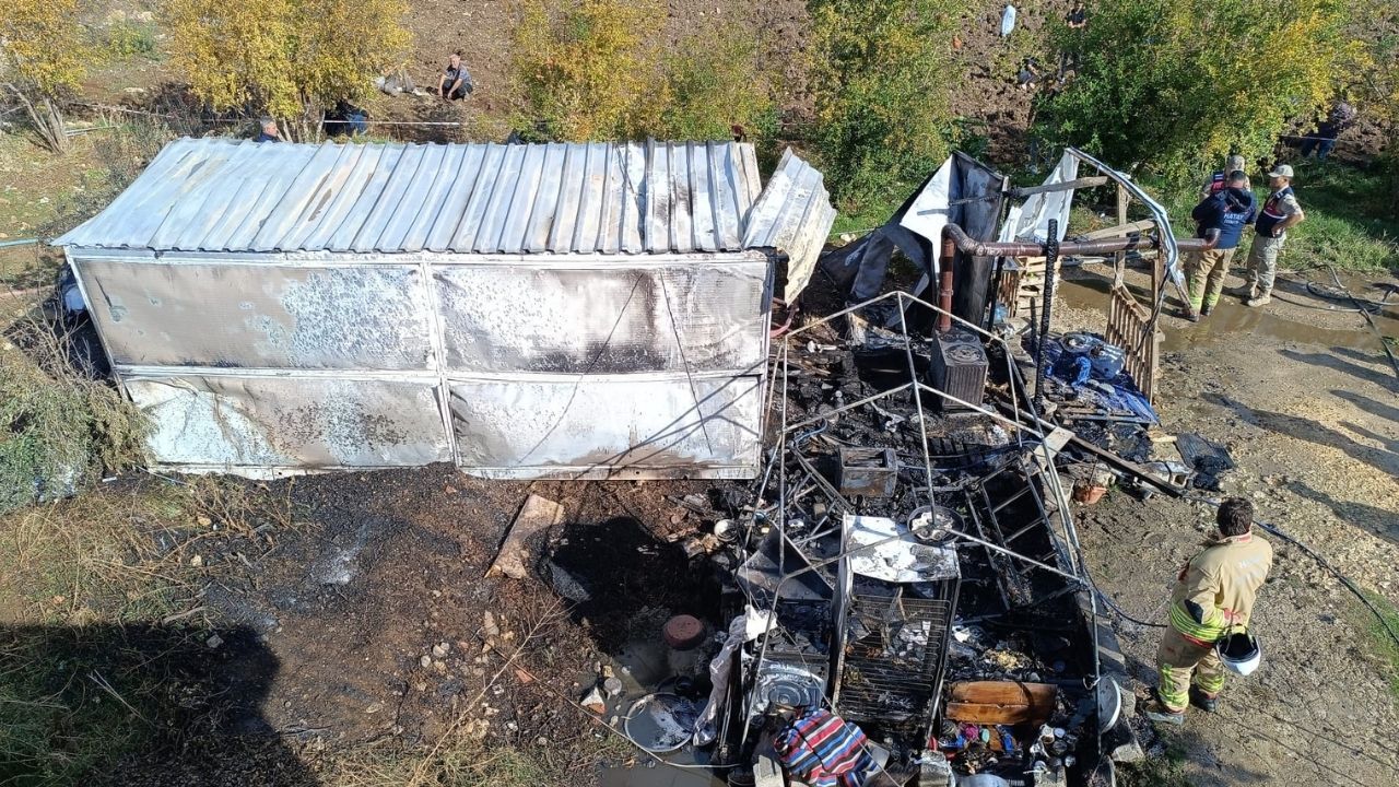 Çayır Mahallesi'ndeki müstakil evin bahçesindeki konteynerde henüz bilinmeyen nedenle yangın çıktı. Alevler, konteynerle birleşik çadıra da sıçradı.