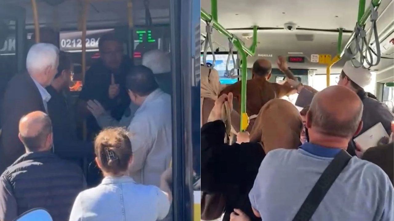 Birbirlerini iten tarafları, otobüsteki diğer yolcular ayırdı. Yaşananlar cep telefonu kamerasıyla görüntülendi.