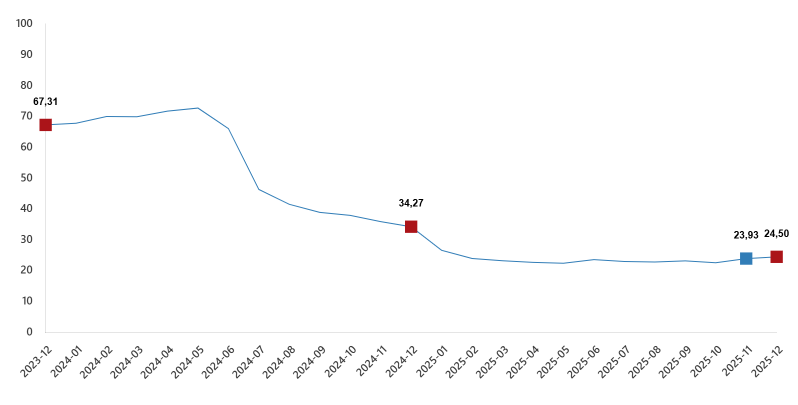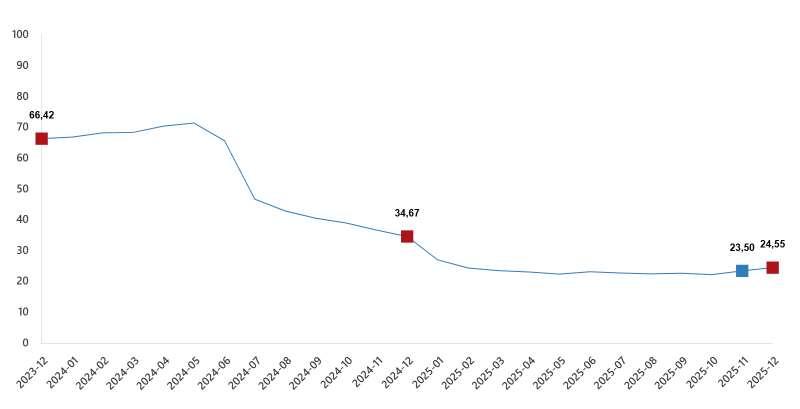 İnşaat maliyet endeksi, 2025 yılı Aralık ayında bir önceki aya göre %1,17 arttı, bir önceki yılın aynı ayına göre %24,50 arttı. Bir önceki aya göre malzeme endeksi %1,22 arttı, işçilik endeksi %1,06 arttı. Ayrıca bir önceki yılın aynı ayına göre malzeme endeksi %21,47 arttı, işçilik endeksi %30,67 arttı.