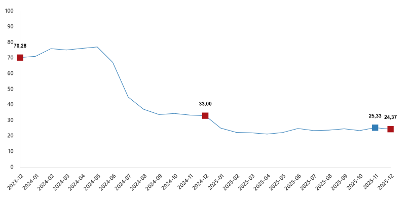 İnşaat maliyet endeksi yıllık değişim oranı(%), Aralık 2025