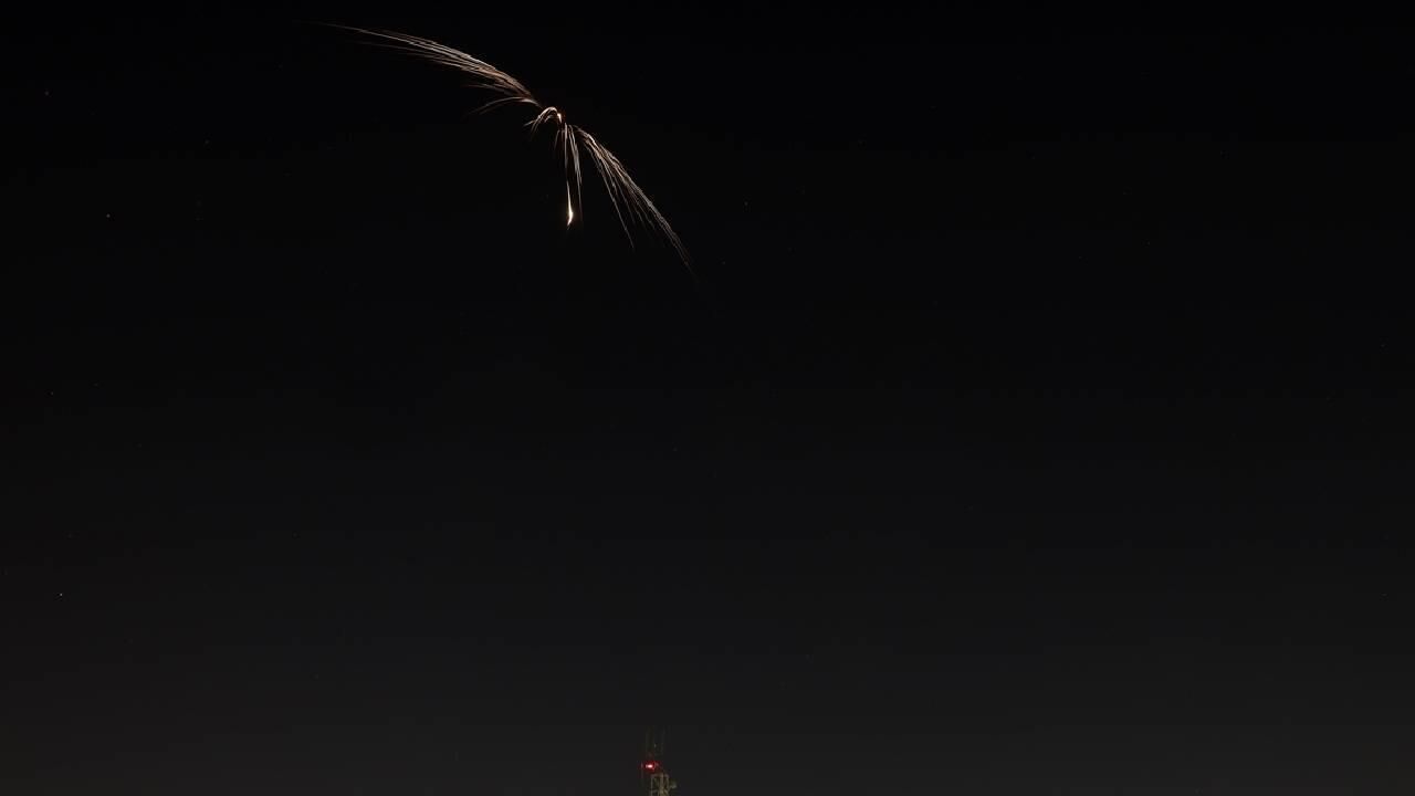 Bölgedeki AA muhabiri, Tel Aviv semalarında İran'dan atılan çok başlıklı bir füzenin görüldüğünü, art arda şiddetli patlama seslerinin duyulduğunu bildirdi.